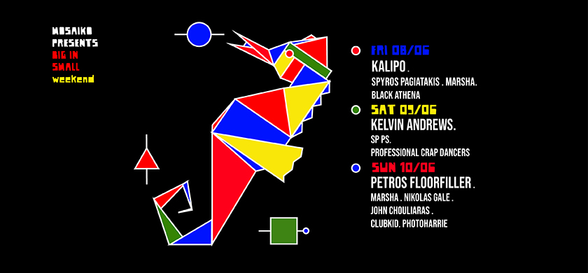 Αν πιστεύετε πως τα μικρά μαγαζιά δεν είναι κατάλληλα για μεγάλα πάρτυ κάνετε λάθος. Για του λόγου το αληθές, αυτό που θα συμβεί στο Mosaiko Cocktail Bar στη Γλυφάδα το τριήμερο 8,9 και 10 Ιουνίου το αποδεικνύει περίτρανα. Ένα τριήμερο event με 14 εντός κι εκτός συνόρων djs και παραγωγούς ονόματι -τι άλλο;- Big In Small έρχεται στο λιλιπούτειο bar για μεγάλες στιγμές χορού που θα καλωσορίσουν με τον καταλληλότερο τρόπο το καλοκαίρι.