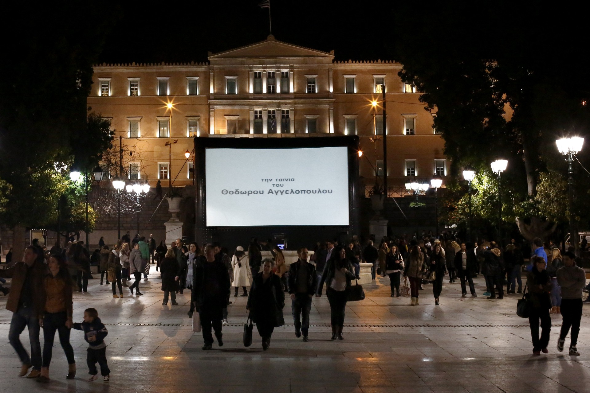 Δύο χρόνια συμπληρώθηκαν χθες, Παρασκευή 24 Ιανουαρίου , από το θάνατο του Θόδωρου Αγγελόπουλου σε ένα ανόητο αυτοκινητιστικό δυστήχημα κατα τη διάρκεια των γυρισμάτων της τελευταίας του ταινίας και ο Δήμος Αθηναίων θέλησε να τον ξαναφέρει ανάμεσα μας, στο κέντρο της πόλης, στην Πλατεία του Συντάγματος.