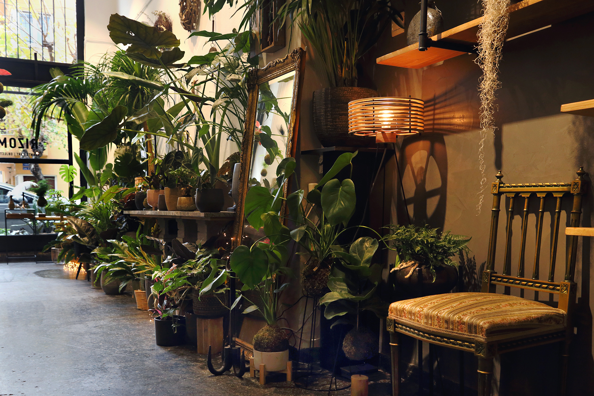 Τα τελευταία χρόνια ζούμε την αναβίωση των φυτών εσωτερικού χώρου. Τα συναντάμε στα σπίτια φίλων, αλλά και στα αγαπημένα μας μπαρ και καφέ. Η Αθήνα γεμίζει με μικρές ζούγκλες που μας φτιάχνουν την διάθεση, ενώ προσθέτουν ζεστασιά και μια οικεία αίσθηση στα μαγαζιά που επισκεπτόμαστε. Αυτή η ζεστασιά είναι εμφανής και στο Rizom, που παρόλο που είναι ένας βιομηχανικός χώρος, με ακάλυπτους τοίχους και έντονο το μεταλλικό στοιχείο, νιώθεις καλοδεχούμενος από την πρώτη στιγμή που θα μπεις μέσα. Σε αυτό φυσικά συμβάλλουν και το χαμόγελο της Θάλειας και του Vincent, που είναι πάντα πρόθυμοι να σε εξυπηρετήσουν, παρόλο που όπως παραδέχονται και οι ίδιοι, ακόμα και εκείνοι μαθαίνουν κάθε μέρα και κάτι νέο για τα φυτά και την φροντίδα τους.