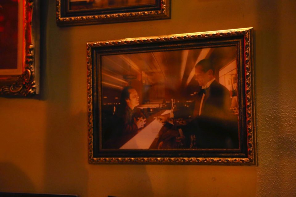 Σε άλλο τοίχο τα κάδρα αποτελούν το συμπύκνωμα των αναφορών που απαρτίζουν την ψυχή των Αισθηματιών. Φωτογραφίες από Τα φτηνά τσιγάρα, από ταινίες του Τσιώλη, από τον Τζακ που πίνει στην μπάρα του ξενοδοχείου της Λάμψης του Κιούμπρικ καθώς και οι στίχοι από το ένα αγαπημένο ποίημα του Αργύρη Χιόνη με τίτλο «Ένας λύκος αισθηματίας»: Διψάω γι’ αγάπη πεινάω γι’ αγάπη πονάω γι’ αγάπη / Ουρλιάζω γι’ αγάπη πεθαίνω γι’ αγάπη αλλά / Είμαι ο λύκος ο κακός ο λύκος και δεν γίνεται / Δεν είναι δυνατόν τέτοια αισθήματα να έχω / Γιατί αν το μάθουνε τα πρόβατα / θα πέσουνε να με σπαράξουν.