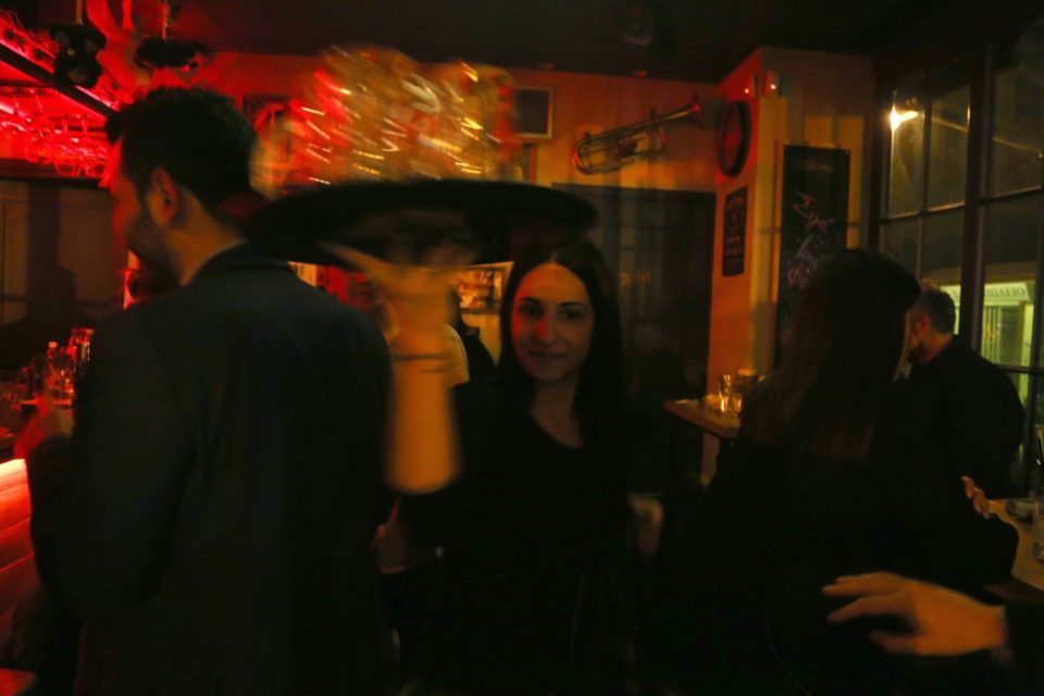 Φτάνω στο μαγαζί γύρω στις 22:30, ο Panti παίζει «μαύρες» μουσικές, τα πνευστά κυριαρχούν τόσο στην funky ατμόσφαιρα όσο και στον ίδιο τον χώρο. Μια τεράστια φωτογραφία του Μπουκόφσκι στον τοίχο δίνει τον τόνο «Όταν πίνεις ο κόσμος εξακολουθεί να υπάρχει, αλλά, για λίγο, δεν σε κρατάει από το λαιμό» άλλωστε το μότο των Αισθηματιών είναι “sad lovers, heavy drinkers”.