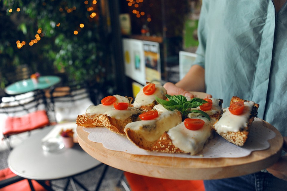 Πίσω από τη μεγάλη ξύλινη μπάρα υπάρχει μία πλούσια κάβα από special ποτά και ξεχωριστά cocktails- δοκιμάστε το Βυσσινόκηπο, με βάση τη βότκα και γλυκό του κουταλιού βύσσινο και τα «ιδιαίτερα» Bramble και Mai Tai. Παράλληλα με το ποτό ή τον καφέ, η κουζίνα λειτουργεί συνεχώς και έτσι από νωρίς το πρωί μέχρι αργά το βράδυ μπορεί κανείς να απολαύσει από σπιτικές μπρουσκέτες και σαλάτες μέχρι fusilli με φρέσκο κιμά.