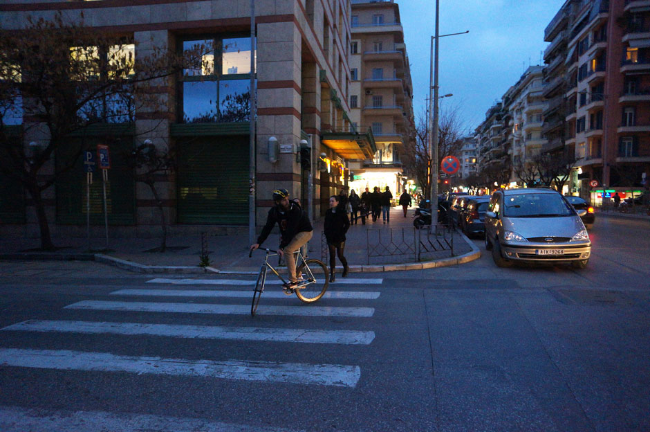 Η βόλτα της Παρασκευής (η οποία έχει οργανωθεί από το Thessaloniki Fixed Gear), ξεκινάει από την Καμάρα όπου θα συναντήσουμε αρκετούς φίλους. Γενικά, βόλτες στην Θεσσαλονίκη γίνονται αρκετές όπως και στην Αθήνα, οι περισσότερες όμως είναι αργές (εξαιτίας της μαζικότητας), ενώ αυτή της Παρασκευής είναι πιο γρήγορη και παρεΐστικη.