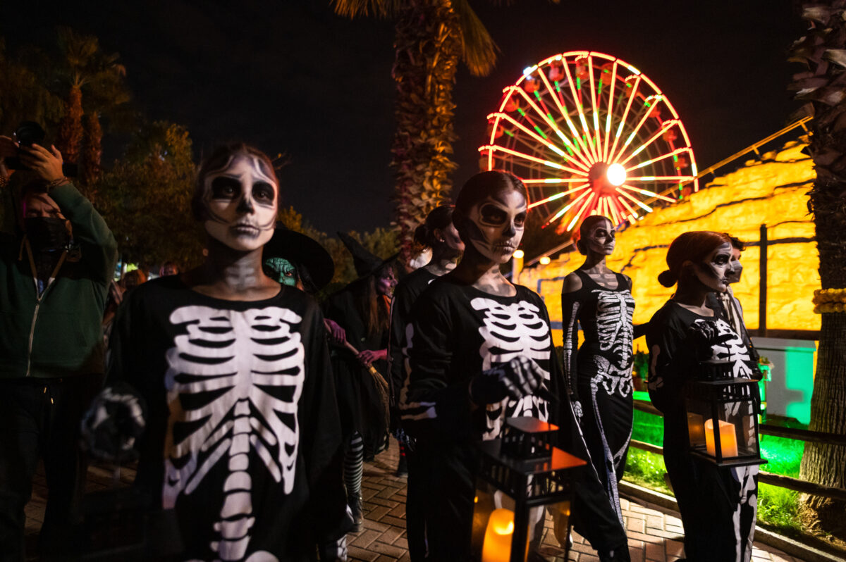 Ένα αληθινό φεστιβάλ για τη γιορτή του τρόμου με 11 shows και χορευτικά δρώμενα που σε κερνάνε…“zombie cocktails” και μπόλικη ανατριχίλα. Δυνατές μεταμορφώσεις από κορυφαίους make up artists, εντυπωσιακά κοστούμια -που θα ζήλευε και η Κιμ- και οι πιο φαντασμαγορικές παρελάσεις των κατοίκων του κάτω κόσμου, συνθέτουν ένα χαλογουιντιανό κινηματογραφικό σκηνικό με πρωταγωνιστή εσένα!