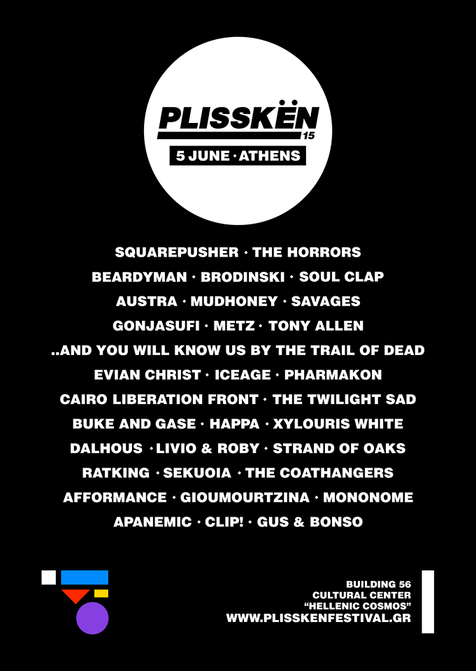 Με δύο αφισάκια στο facebook του Plissken Festival, ξεκαθάρισε ποια θα παίξουν την κάθε μέρα του πολυαναμενόμενου φεστιβάλ. Εν καιρώ θα ανακοινωθεί και το ακριβές χρονοδιάγραμμα. Yπενθυμίζουμε ότι το φεστιβάλ διεξάγεται στον Ελληνικό Κόσμο (Πειραιώς 260), 5-6 Ιουνίου. Περισσότερες πληροφορίες και εισιτήρια στο επίσημο site