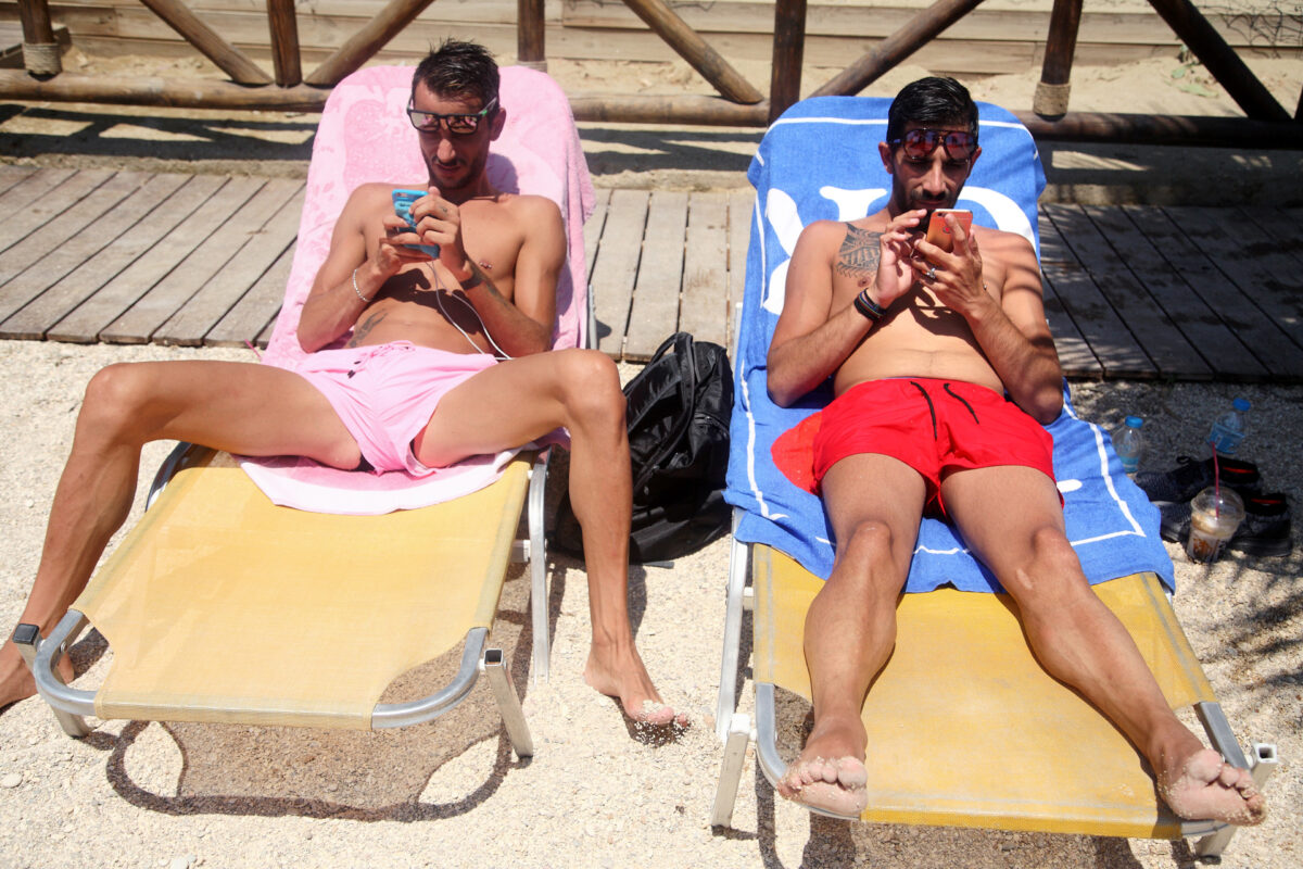 Αφήνονται ελεύθεροι κάτω από τον ήλιο ή την ομπρέλα να παρατηρούν το πολύχρωμο πλήθος να περιφέρεται ανέμελα, επιδεικτικά ή νωθρά, ανάμεσα σε μαξιμαλιστικά σκηνικά πλαστικού εξωτισμού. Αρκετές παραλίες είναι πιο κοσμικές από τις άλλες, “πριβέ” θα τις έλεγε κανείς, και κάποιος περνάει, αναγκαστικά, μέσα από ντιζαϊνάτα καφέ-μπαρ-εστιατόρια για να πλησιάσει τη θάλασσα. Θα ανταμοιφθεί από την “προσφορά” και από τη “ζήτηση”.