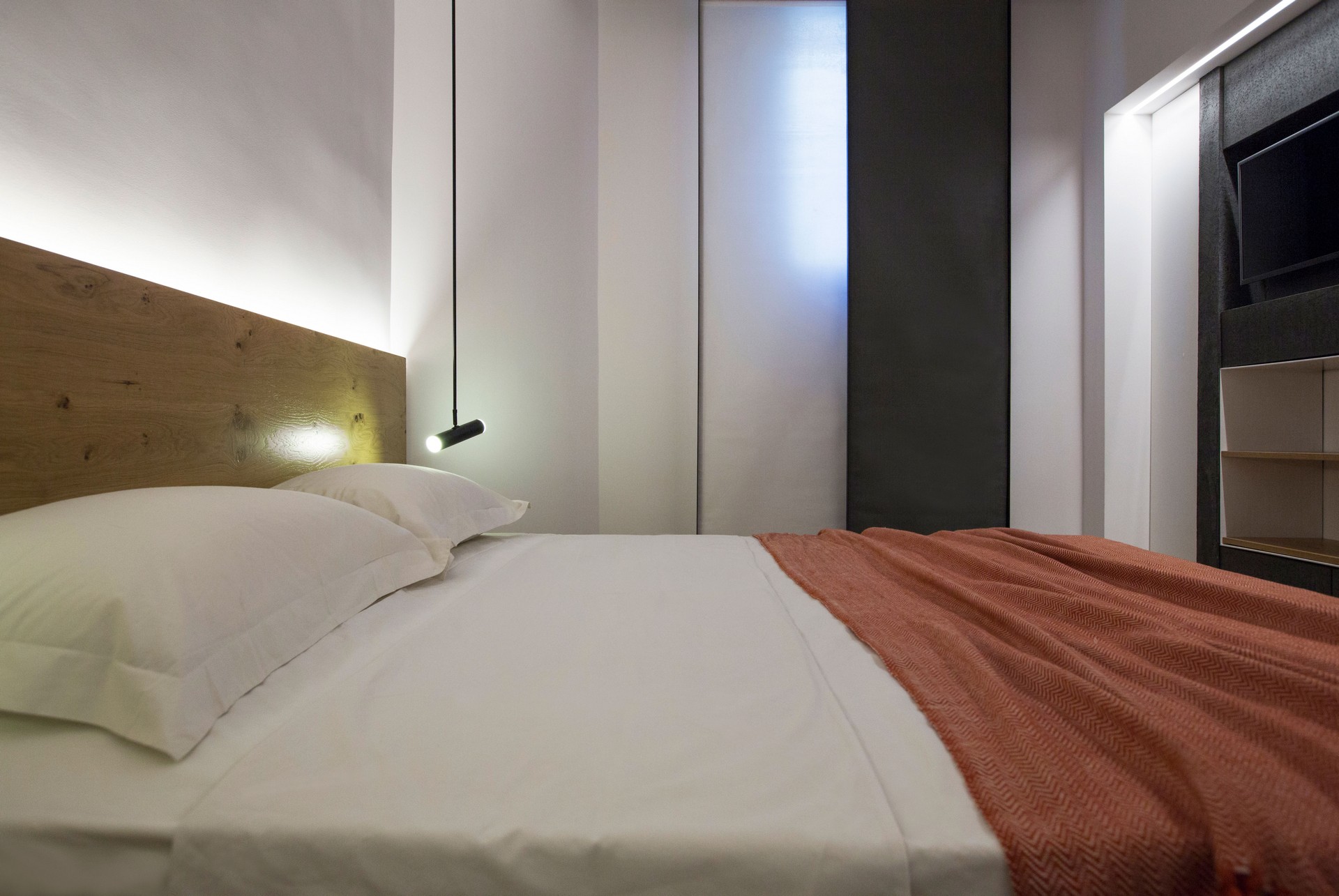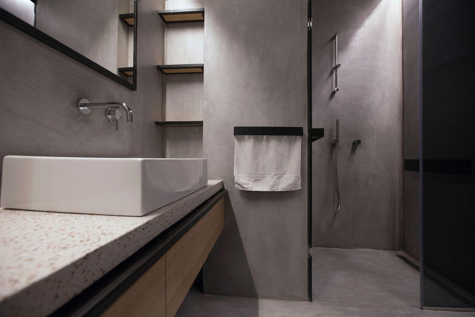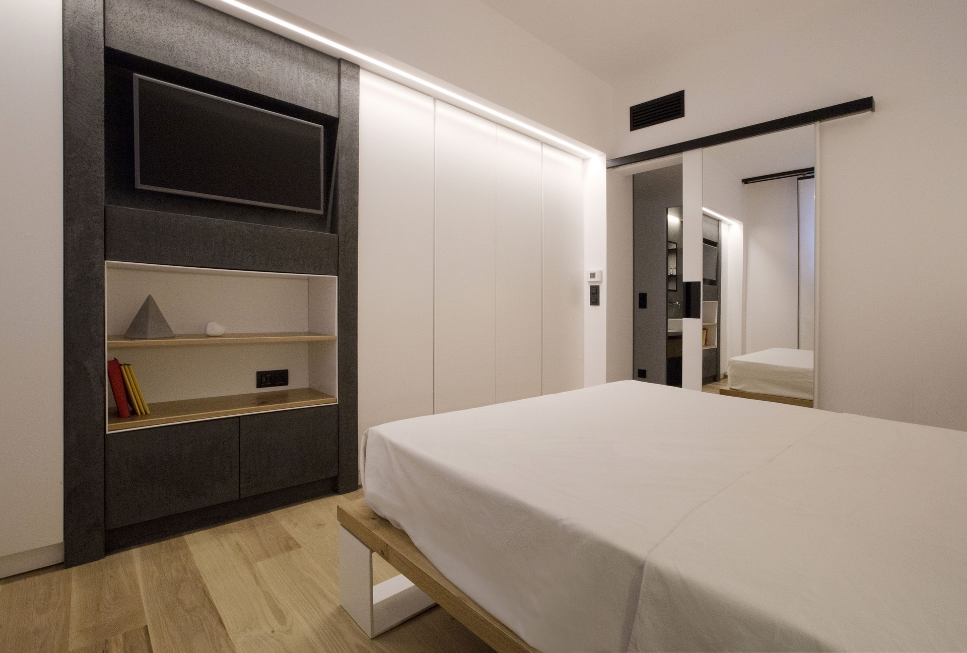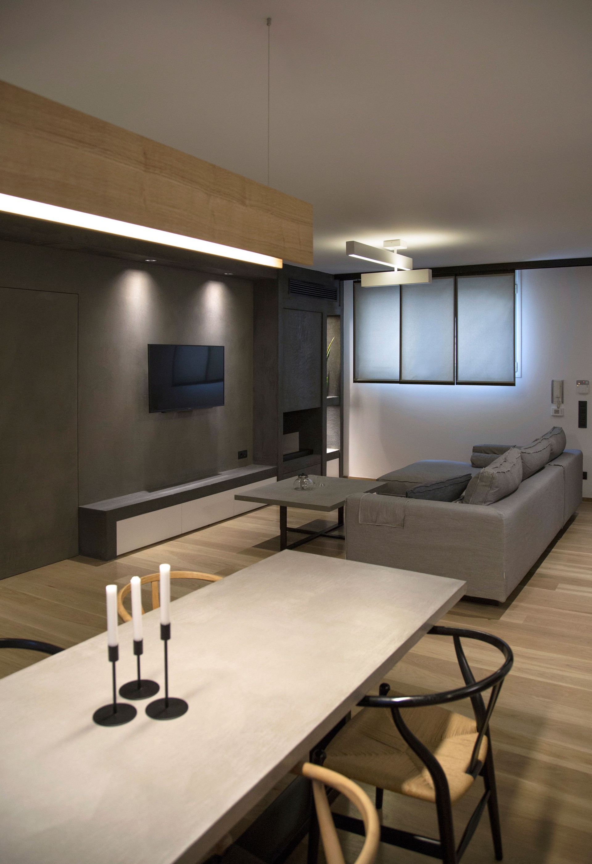 «Δεδομένης της διαφορετικής διάταξης του χώρου, όταν αναλάβαμε το έργο, καθώς και του μικρού του μεγέθους, θέλαμε εξαρχής τη μέγιστη λειτουργικότητα του χώρου, χωρίς να χάνουμε ωφέλημα τετραγωνικά μέτρα. Διαμορφώθηκε έτσι ένας τοίχος που διαχωρίζει τους κοινόχρηστους από τους ιδιωτικούς χώρους, ενώ ταυτόχρονα παραλαμβάνει πάνω του πολλαπλές λειτουργίες», εξηγεί το γραφείο.
