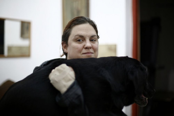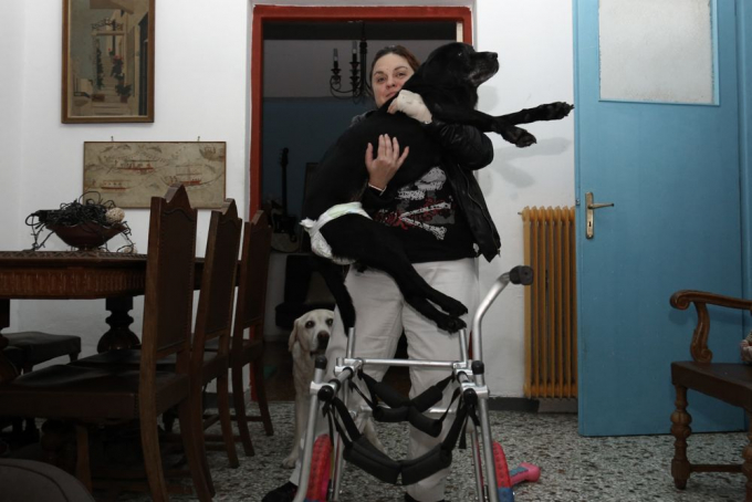Μας υποδέχτηκαν παρέα στο σπίτι τους στο Χαλάνδρι και η Ιωάννα μετουσίωσε σε λέξεις το απόσταγμα τρυφερότητας της σχέσης τους: «Μου άλλαξε τη ζωή. Μετέβαλλε δραστικά τη λειτουργικότητά μου, με βοήθησε να αποκτήσω ελευθερία κινήσεων και καλύτερο προσανατολισμό, με έκανε να καταλάβω τι σημαίνει να έχεις έναν σκύλο δίπλα σου και να είστε ένα. Το 2015 διαγνώστηκε μ’ ένα αυτοάνοσο και παρέλυσε. Τότε μου είχαν πει ότι ή θα γίνει καλά ή θα φτάσει στους πνεύμονες και θα πεθάνει. Η Λάρα ξαναπερπάτησε και μετά από δύο μήνες έχασα τους γονείς μου. Ήταν σαν να είχε διαισθανθεί κάτι με το αυτοάνοσο, σαν να προσπάθησε να μου πει κάτι. Τους τελευταίους τρεις μήνες βάρυνε ξανά και δεν περπατάει. Έχει ένα ορθοπεδικό κρεβάτι για να είναι πιο άνετα. Της πήρα ένα αμαξίδιο για να στέκεται όρθια, να βγαίνει λίγο έξω και να μην παθαίνει κατακλίσεις. Είναι σε μια ηλικία που μια κατάκλιση μπορεί να της επιφέρει λοίμωξη. Γι’ αυτό είναι σημαντικό να σηκώνεται. Θέλει την επαφή. Χαίρεται όταν είμαστε μαζί. Η αναπηρία δεν μειώνει την αντίληψη ή την ανάγκη. Τα σκυλιά έχουν όρεξη. Έχουν τους ίδιους μηχανισμούς με τους ανθρώπους, πονάνε σωματικά και ψυχικά και όσο περνούν τα χρόνια γίνονται ευάλωτα. Η Λάρα με φρόντιζε τόσα χρόνια, τώρα πρέπει να τη φροντίσω εγώ. Δε θα μπορούσα ένα σκυλί που μου προσέφερε τόσα πολλά να το παρατήσω. Αν στο μέλλον προκύψει κάτι που θα επιδεινώσει ραγδαία τη ζωή της, θα κάνω αυτό που πρέπει. Είμαι υπέρ της ευθανασίας και στους ανθρώπους και στα ζώα, αν φτάσεις σ’ ένα σημείο που υποφέρεις. Τώρα, όμως, ο πρωταρχικός μου στόχος είναι να τη βλέπω ευτυχισμένη».