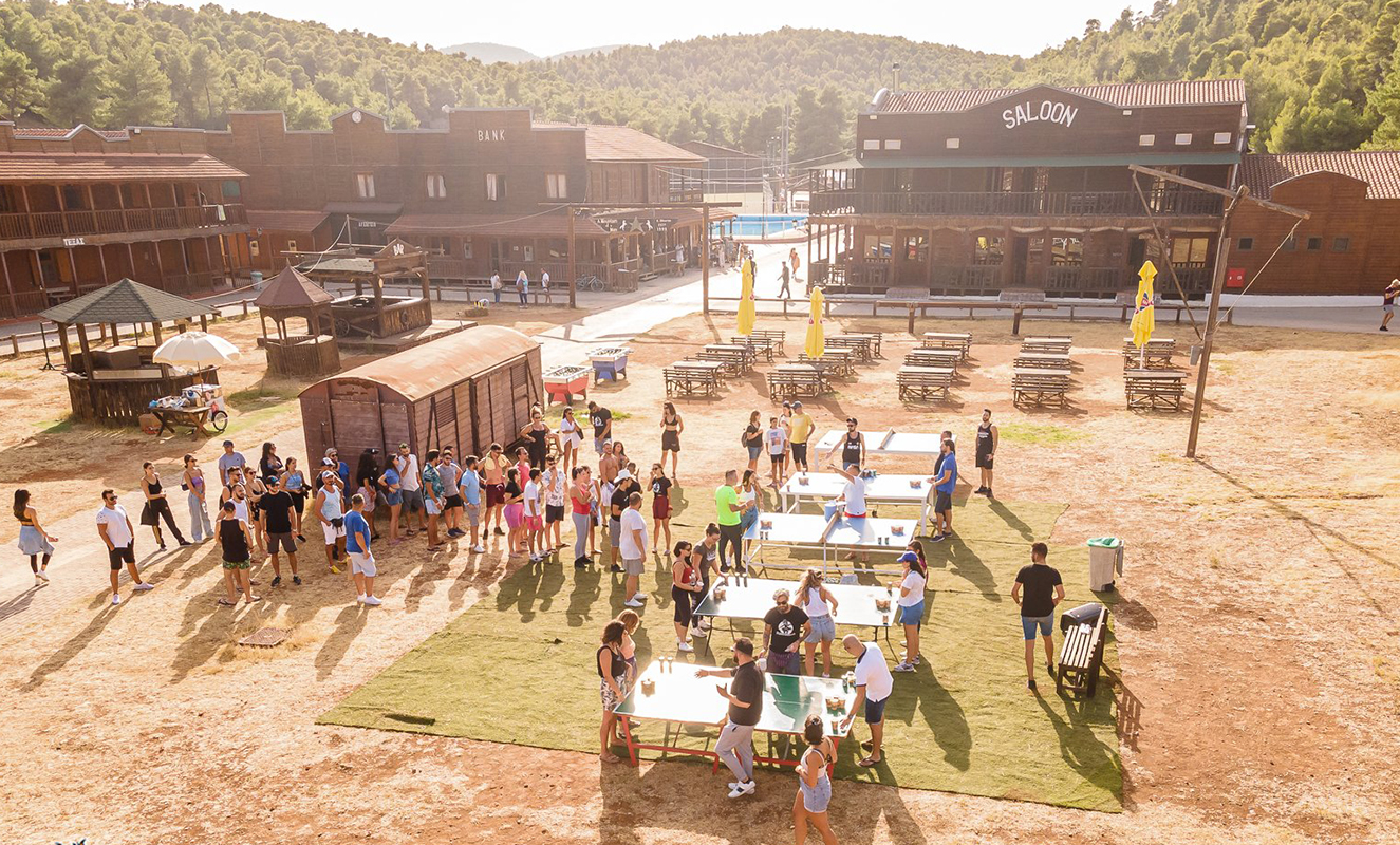 Φυσικά δεν πρόκειται για πραγματικό χωριό αλλά για ένα κατασκευασμένο, όμοιο με εκείνα της Άγριας Δύσης, γεμάτο ξύλινα σπιτάκια, εκκλησία, ροντέο, εξωτερικά μπαρ, αμφιθέατρο, εργαστήρια, τρενάκι αλλά και πολλούς αθλητικούς χώρους όπως γήπεδο μπάσκετ και ποδοσφαίρου, τραπέζια πινγκ πονγκ και πισίνες.