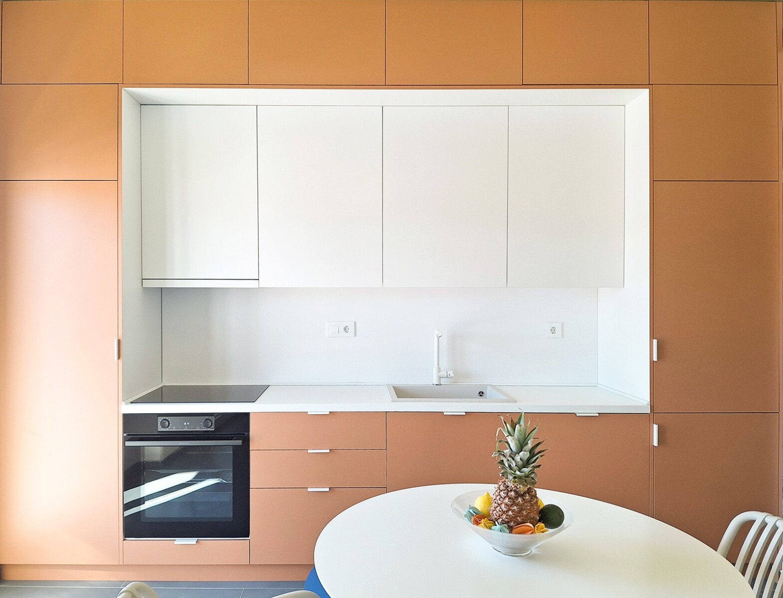 Επαρκείς αποθηκευτικοί χώροι έχουν ενσωματωθεί στον σχεδιασμό, προσφέροντας άνεση και οργάνωση. Η χρωματική παλέτα του διαμερίσματος είναι εμπνευσμένη από το καλοκαίρι.