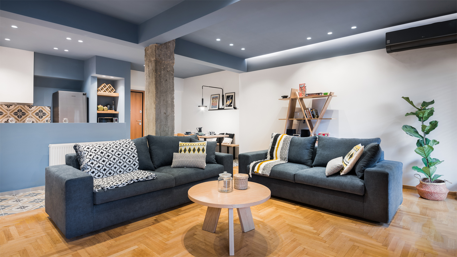 Στο κέντρο της Αθήνας, στην περιοχή των Εξαρχείων, το γραφείο των Arcore Engineers ανέλαβε τη μελέτη και την κατασκευή της ανακαίνισης ενός διαμερίσματος 75 τ.μ., στον 2ο όροφο μιας πολυκατοικίας των αρχών της δεκαετίας του ‘70.