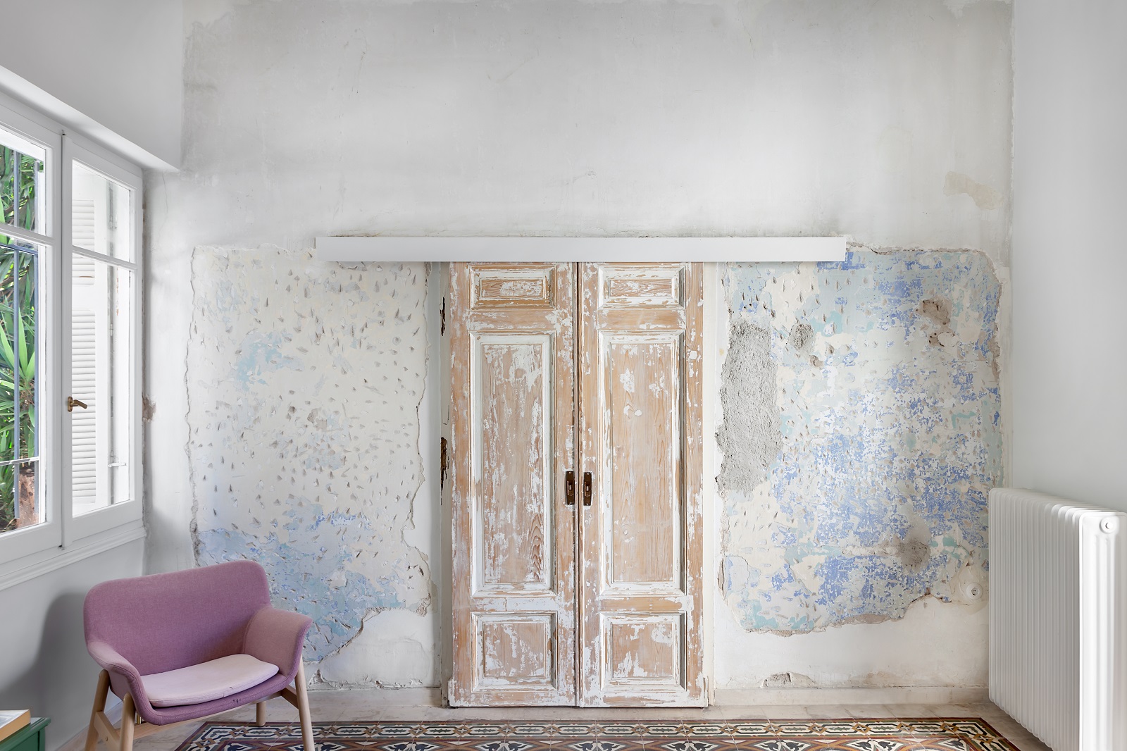 Σε όλο το σπίτι, παλιά έπιπλα που βρέθηκαν στον χώρο αποκαταστάθηκαν και επαναχρησιμοποιήθηκαν, αποκτώντας νέα λειτουργία. Με αυτόν τον τρόπο, η ανακαίνιση δεν διαγράφει την ιστορία του κτίσματος, αλλά τη μετατρέπει σε μέρος της νέας του ταυτότητας.