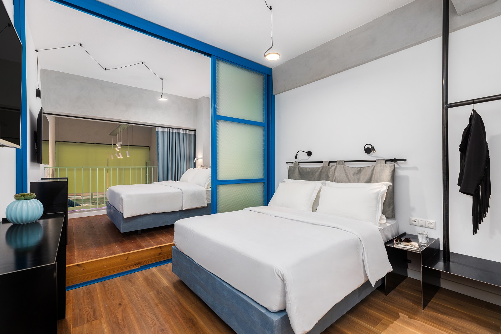 Η επιλογή και ο συνδυασμός διαφορετικών υλικών, με ποικιλία υφών και τολμηρών χρωμάτων, δημιούργησε έναν χώρο με έντονη προσωπικότητα και παιχνιδιάρικο χαρακτήρα, για μια μοναδική εμπειρία για τους επισκέπτες.