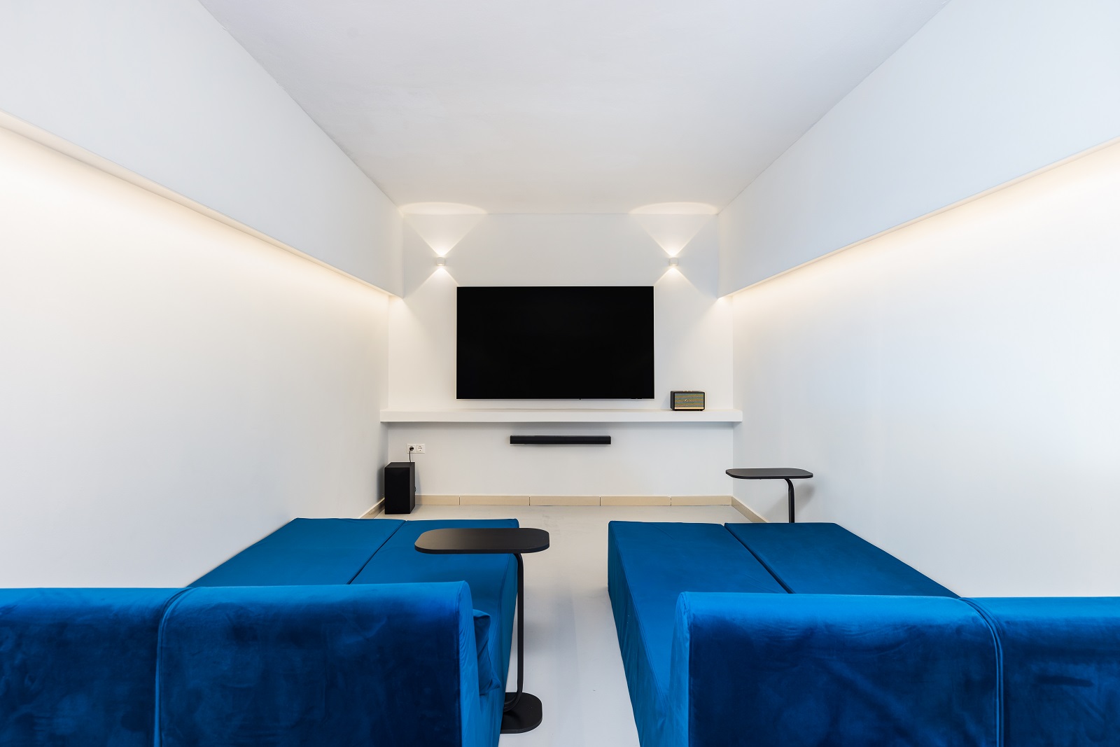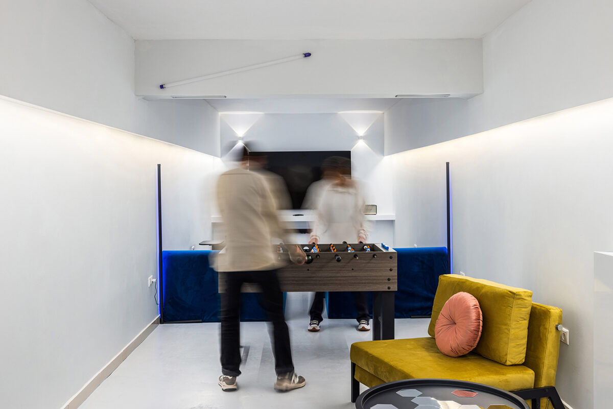 Εκτός από το μπιλιάρδο, τις επιλογές για ψυχαγωγία και κοινωνικοποίηση συμπληρώνουν ένα ποδοσφαιράκι και ένα home cinema στο υπόγειο.