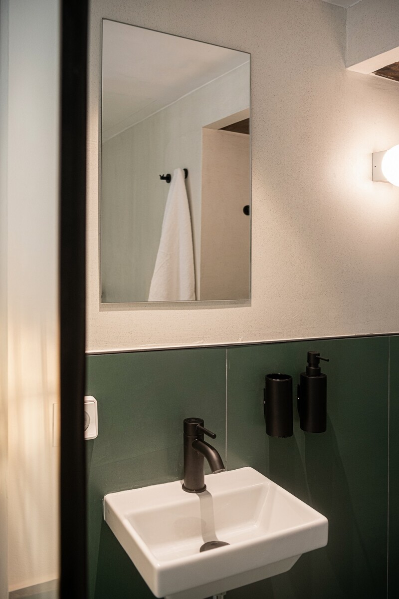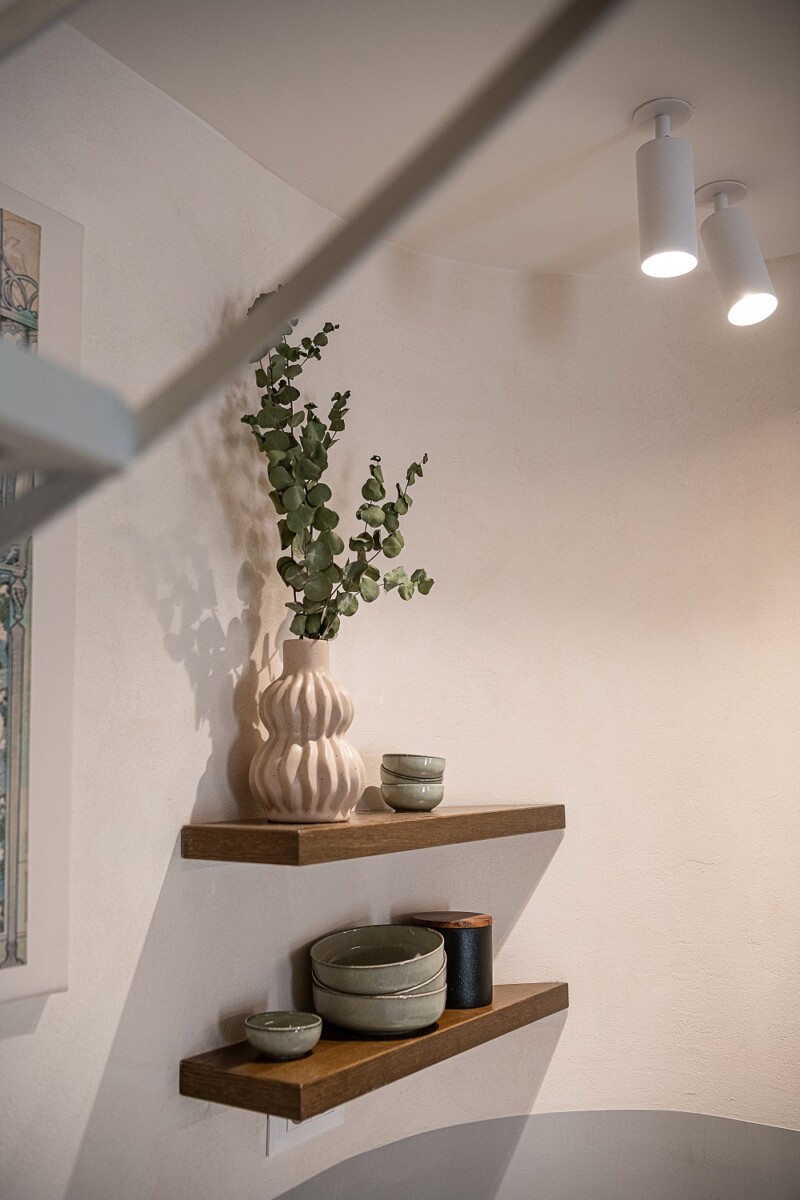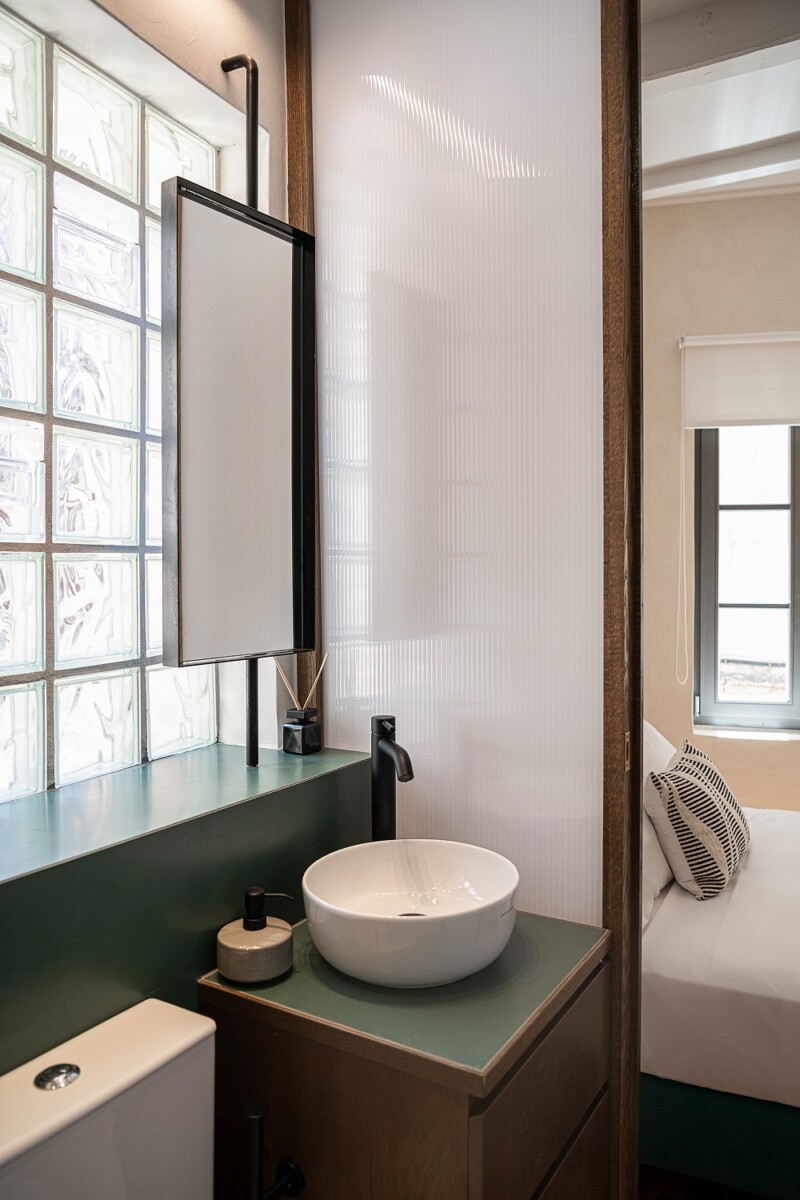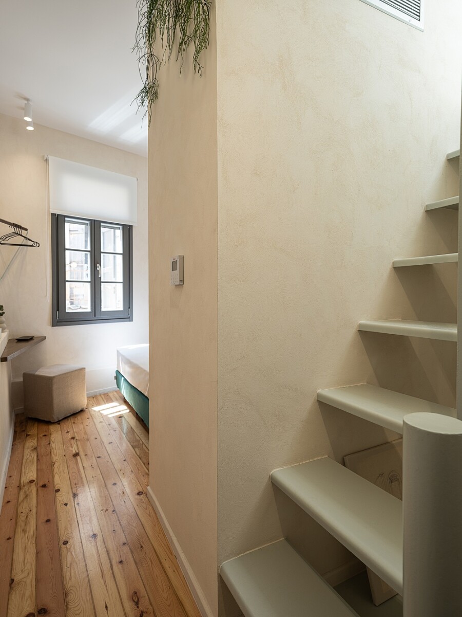 Η ήσυχη σχεδιαστική παρέμβαση είχε ως αποτέλεσμα τη σαφώς λειτουργική εκμετάλλευση του περιορισμένου χώρου και την ανάδειξη της ιστορικής ατμόσφαιρας του κτιρίου με ένα σύγχρονο λεξιλόγιο.