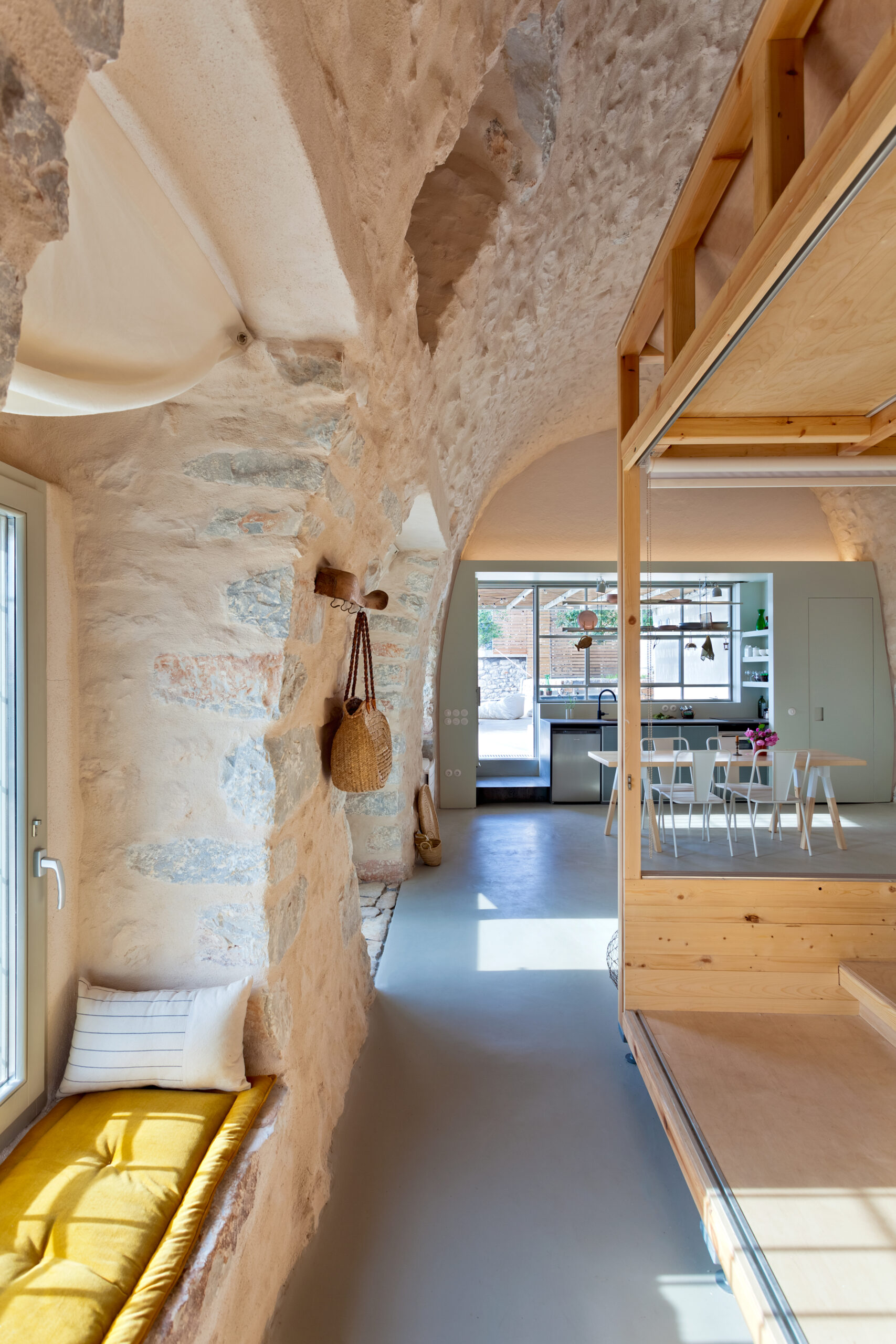 Κατασκευαστικά, έγιναν οι λιγότερες δυνατές παρεμβάσεις, καθώς πρόθεση του γραφείου ήταν να εκμεταλλευτεί και να αναδείξει την παραδοσιακή σοφία-τεχνογνωσία, με την οποία είναι φτιαγμένα τα κτίρια αυτά.