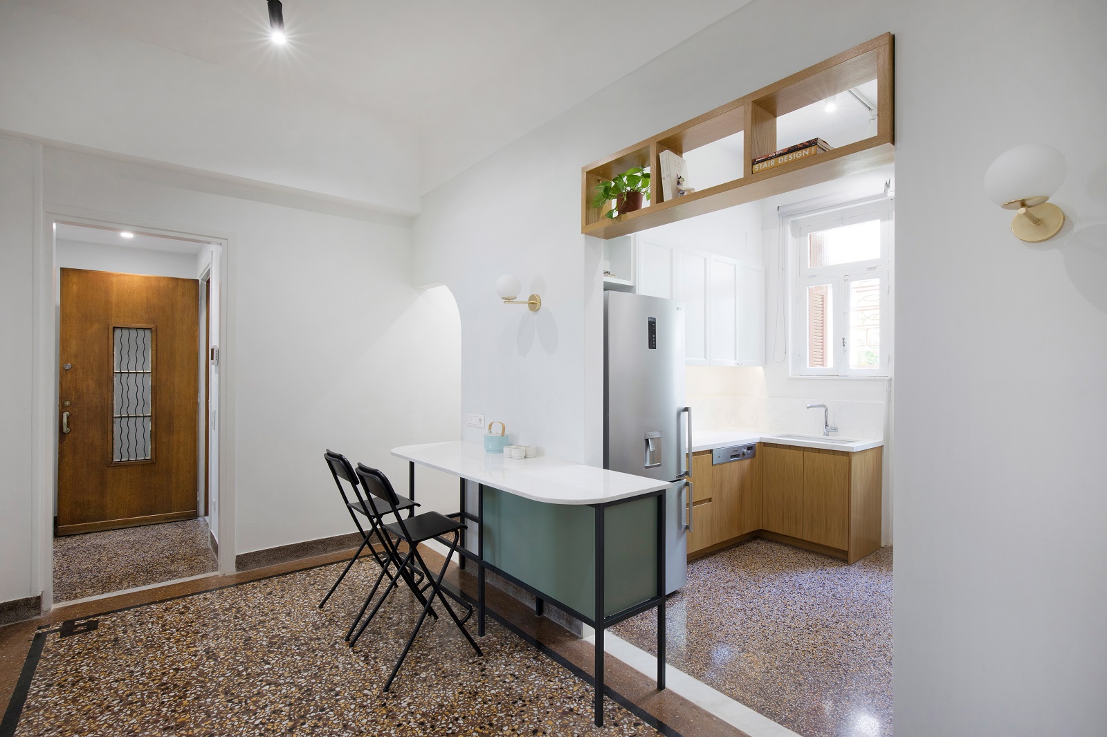 Με αυτόν τον τρόπο, η κουζίνα που μέχρι πρότινος ήταν ένας απομονωμένος χώρος, λειτουργεί σαν ένα κεντρικό στοιχείο του διαμερίσματος.