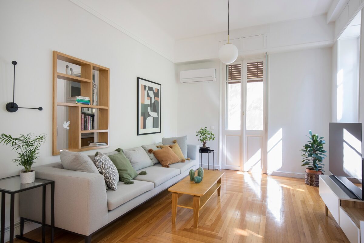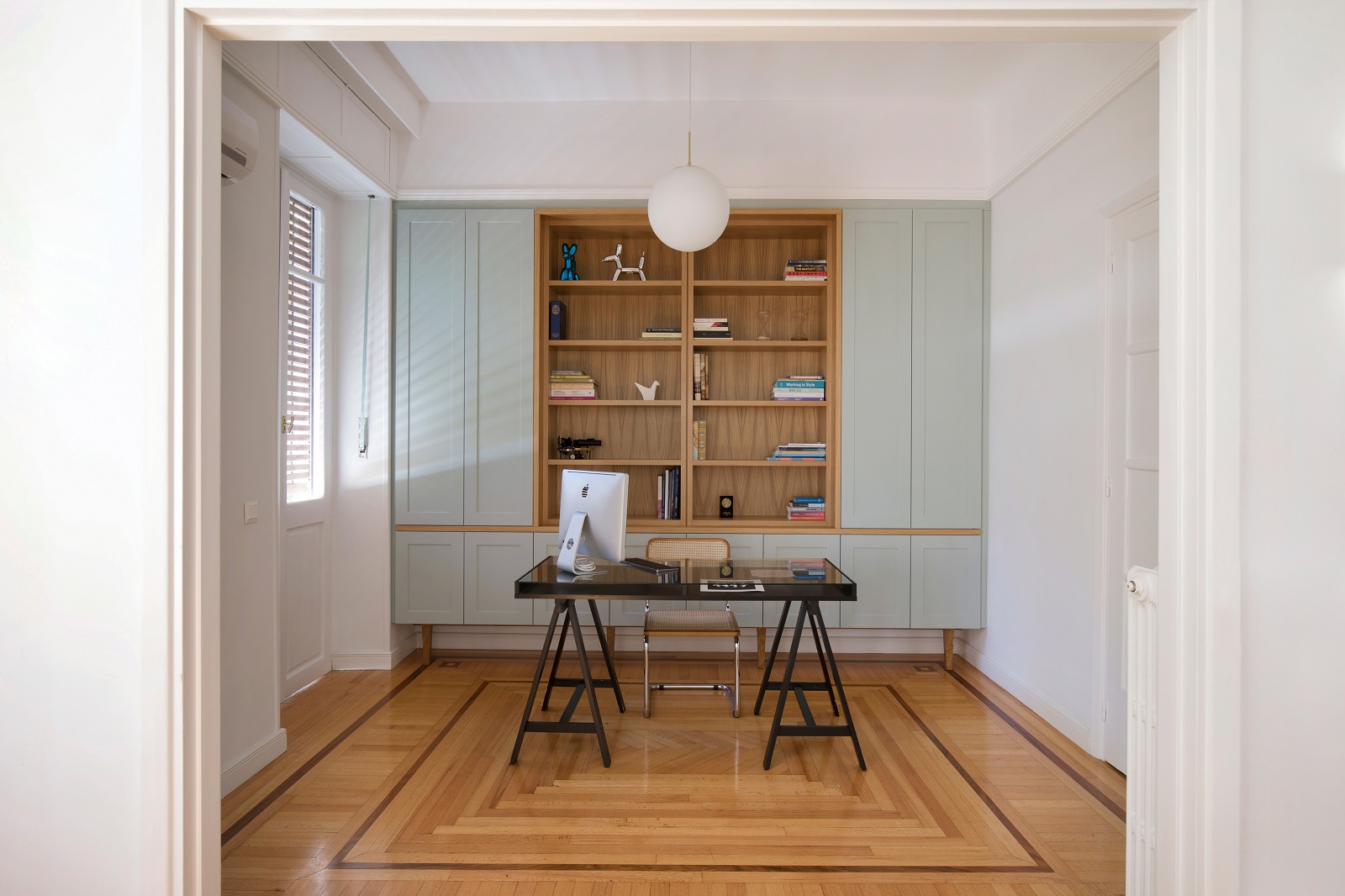 Στον πρώτο όροφο ενός διατηρητέου κτιρίου δίπλα στο Καλλιμάρμαρο Στάδιο, που σχεδιάστηκε από τον αρχιτέκτονα Βασίλειο Κασσάνδρα το 1930 και αποτελεί χαρακτηριστικό παράδειγμα της μεσοπολεμικής αθηναϊκής αρχιτεκτονικής, η Στέλλα Παπάζογλου και η Λουίζα Βαρελίδη, ιδρυτικό δίδυμο των Polisgram Architects, ανέλαβαν την ανακαίνιση ενός διαμερίσματος 120τ.μ.