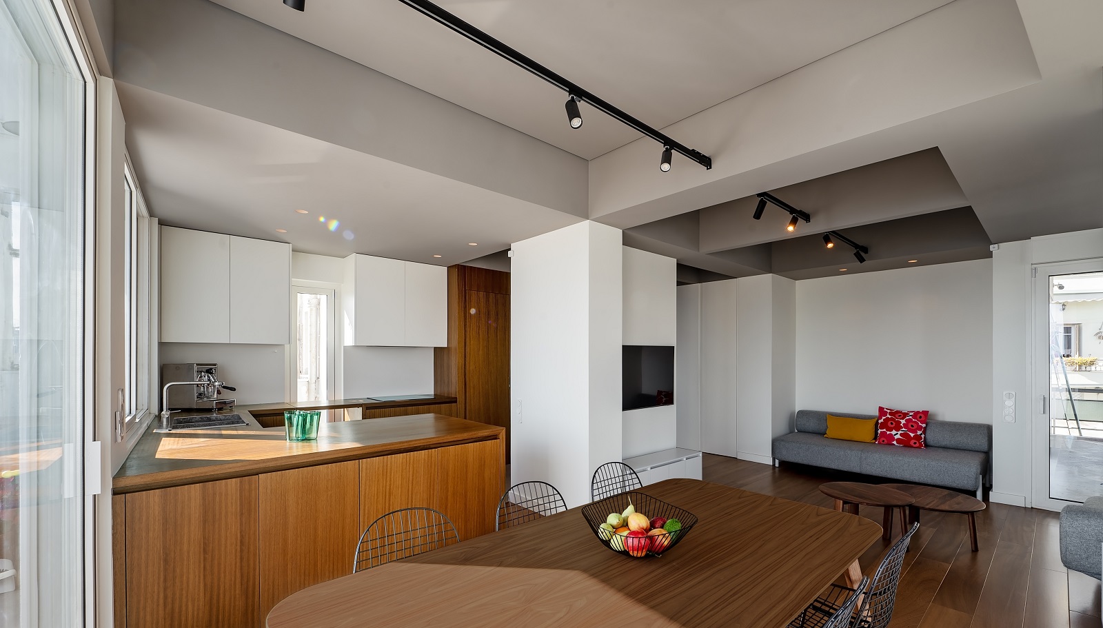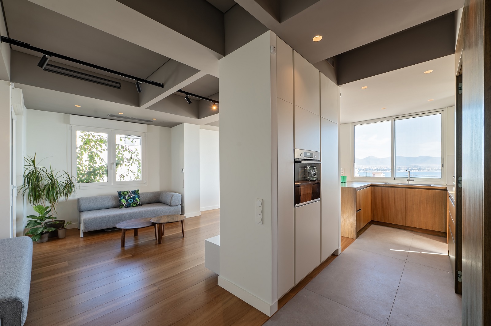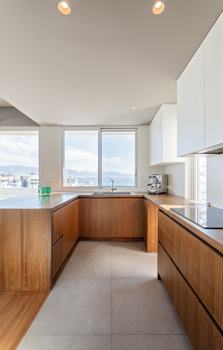 Το αρχιτεκτονικό γραφείο Plaini and Karahalios Architects ανέλαβε τον επανασχεδιασμό ενός οροφοδιαμερίσματος με ανεμπόδιστη θέα προς τον Όρμο του Φαλήρου, σε μια πολυκατοικία της δεκαετίας του 1970, στην περιοχή της Καστέλλας.
