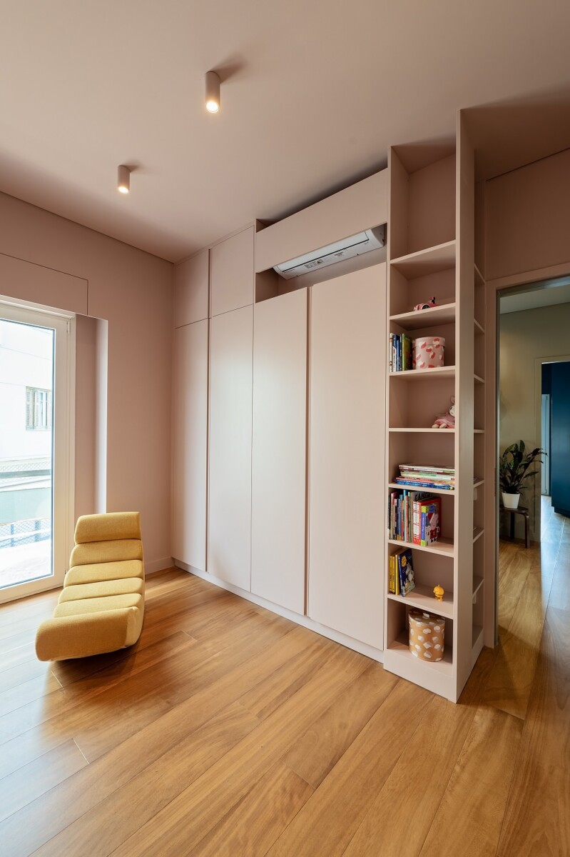 Αποχρώσεις του ροζ, του μπλε και του πράσινου δημιουργούν ξεχωριστή ταυτότητα σε κάθε ένα από τα δωμάτια και στο μπάνιο.