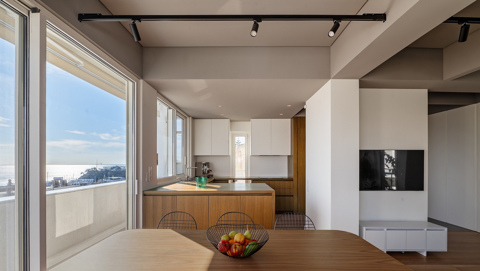 Το αρχιτεκτονικό γραφείο Plaini and Karahalios Architects ανέλαβε τον επανασχεδιασμό ενός οροφοδιαμερίσματος με ανεμπόδιστη θέα προς τον Όρμο του Φαλήρου, σε μια πολυκατοικία της δεκαετίας του 1970, στην περιοχή της Καστέλλας.