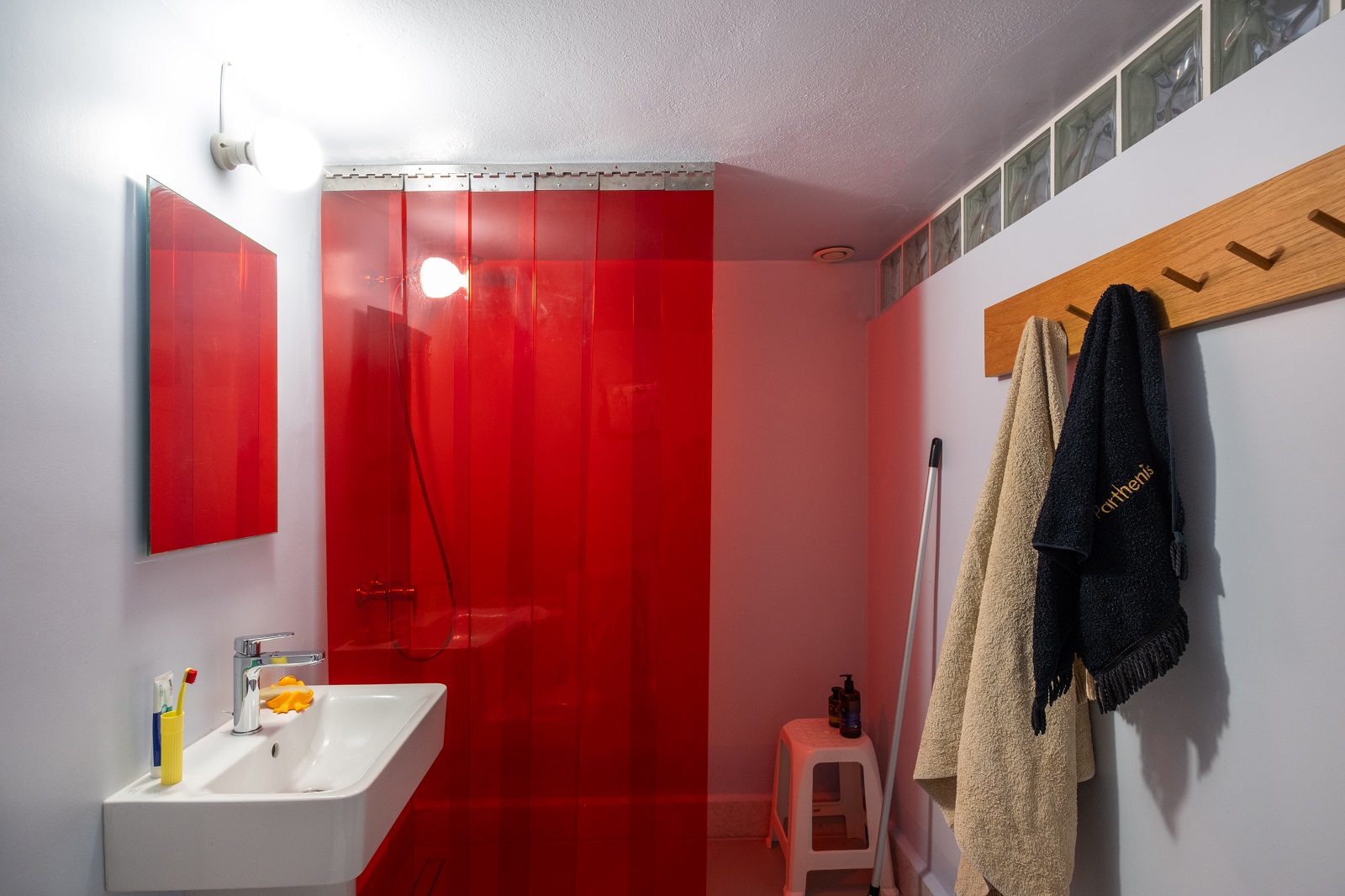 Μια νέα ανοιχτή διάταξη επιτεύχθηκε με την κατεδάφιση των τοίχων του υπνοδωματίου, δημιουργώντας έτσι ένα πιο ευρύχωρο εσωτερικό.