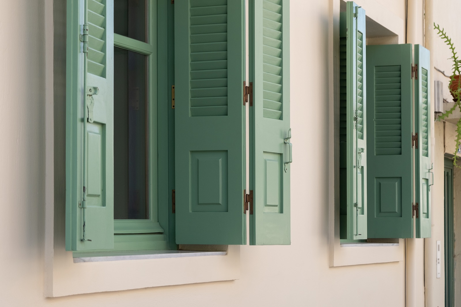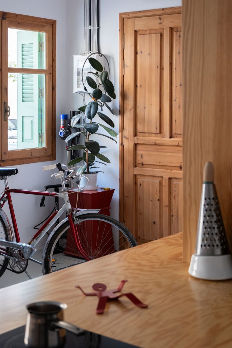 Η εξωτερική όψη της κατοικίας ανανεώθηκε με ανοιχτό μπεζ χρώμα, ενώ τα παλιά κουφώματα συντηρήθηκαν και βάφτηκαν εξωτερικά με απαλό πράσινο, δημιουργώντας μια ωραία αντίθεση με τα στοιχεία από φυσικό ξύλο στο εσωτερικό.