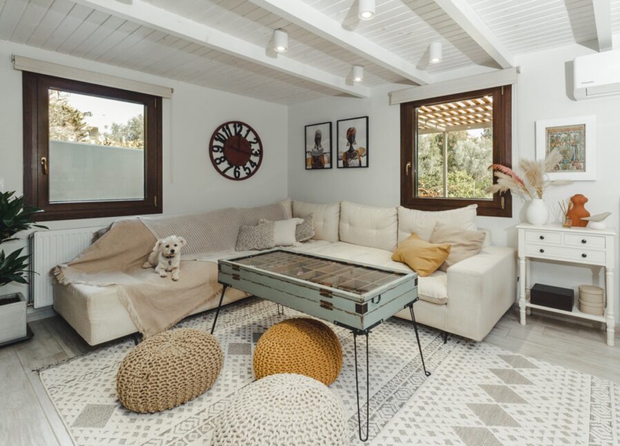 Τα έπιπλα είναι στην πλειοψηφία τους custom made για να προσαρμόζονται στον γενικό σχεδιασμό και τις ανάγκες των κατοίκων, ενισχύοντας το country ύφος που ήταν ο στόχος για το σύνολο του σχεδιασμού.