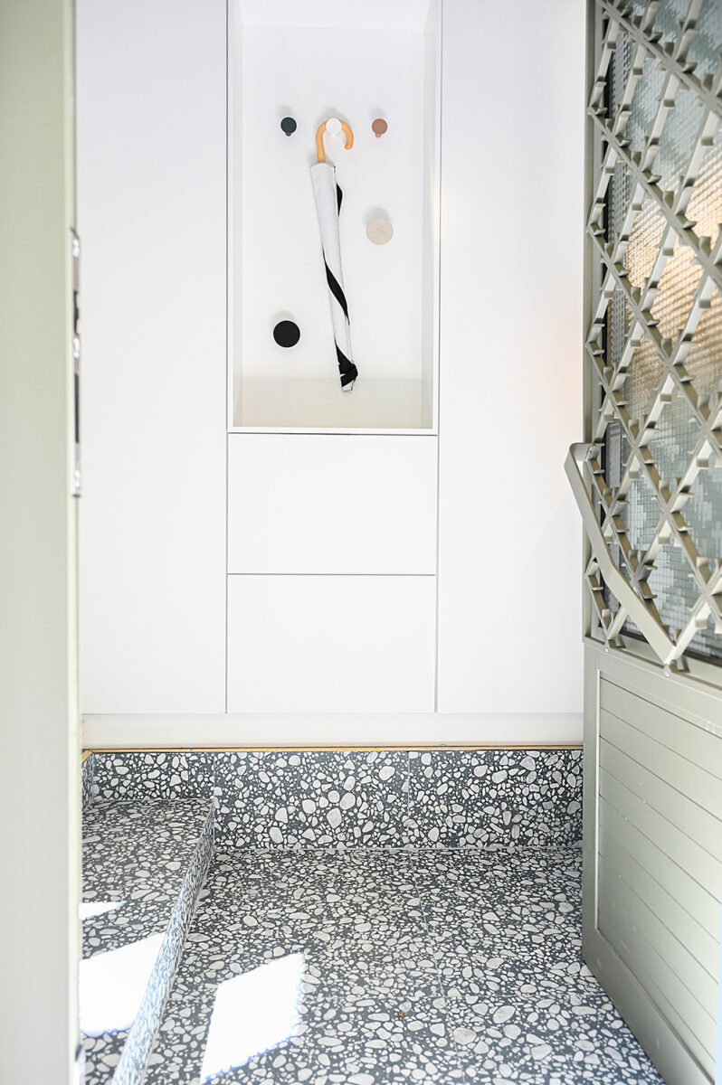 Η επιθυμία των νέων ενοίκων για μία κατοικία που ανταποκρίνεται σε ένα σύγχρονο τρόπο ζωής αποτελεί κύριο μέλημα στο σχεδιασμό του έργου. Έτσι, προστίθεται ένα WC επισκεπτών, ένας χώρος γραφείου-τηλεργασίας, ενώ το παλιό αποθηκάκι μετατρέπεται σε βεστιάριο.