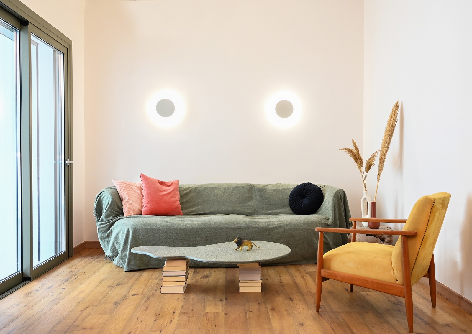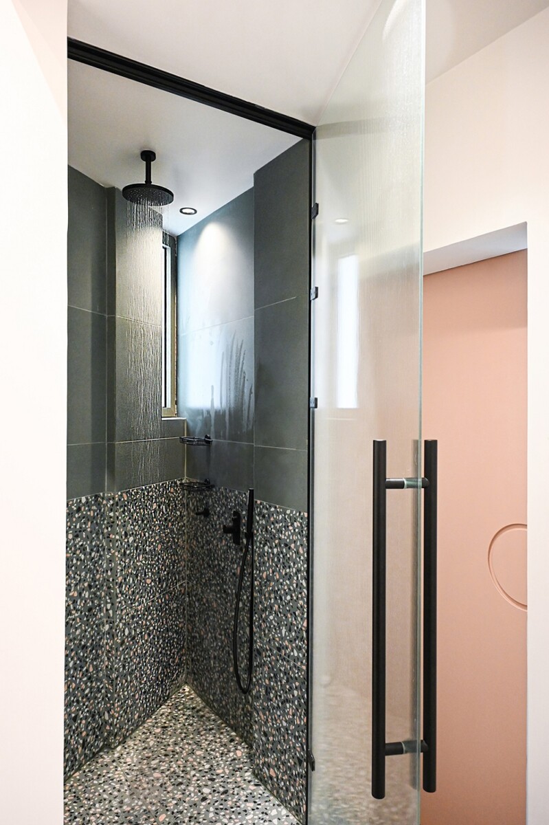 Αδρά υλικά, όπως ξύλο, μωσαϊκό και τυπικές πλάκες πεζοδρομίου, χρησιμοποιούνται σε συνδυασμό με παλ αποχρώσεις και pop στοιχεία, προκειμένου να συνθέσουν ένα σύγχρονο σπίτι.