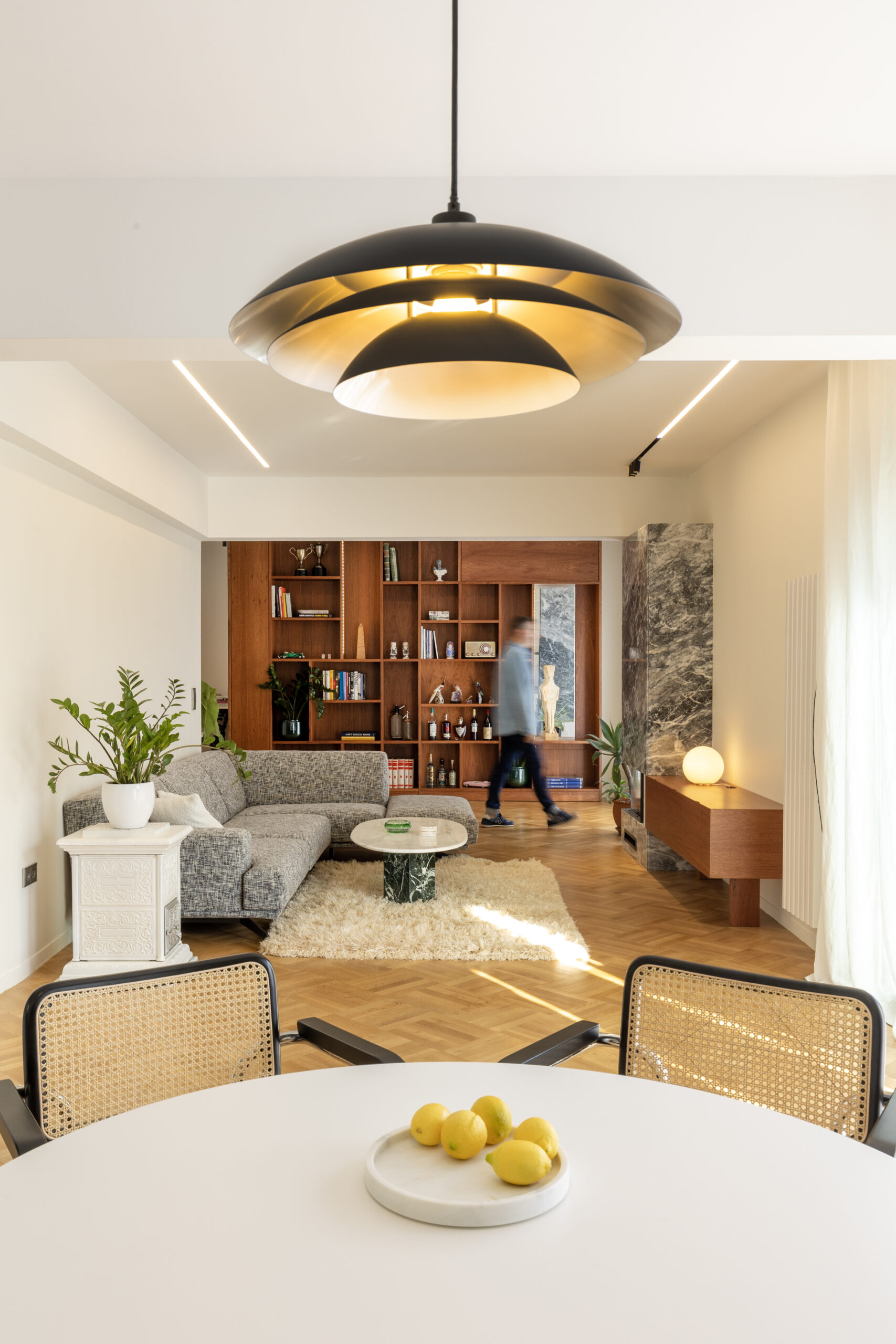 Το διαμέρισμα των 120 τ.μ. στην οδό Επτανήσου εκσυγχρονίστηκε από το γραφείο SOUTH architecture, που αναβάθμισε τα αυθεντικά του στοιχεία μετατρέποντάς το σε έναν βιώσιμο χώρο με φινετσάτο design.