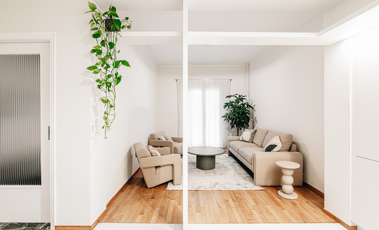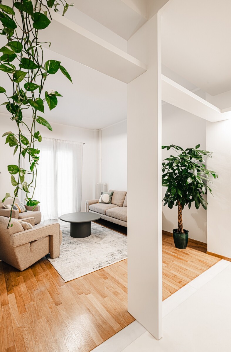 Βασικός στόχος της ανακαίνισης ήταν η δημιουργία ενός σύγχρονου διαμερίσματος βραχυχρόνιας μίσθωσης, με στοιχεία αναφοράς στα αρχικά χαρακτηριστικά του.