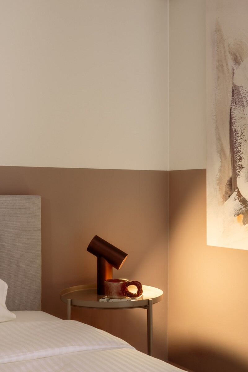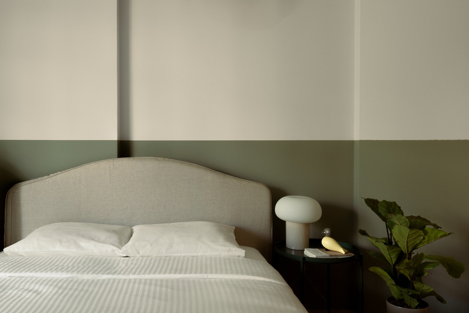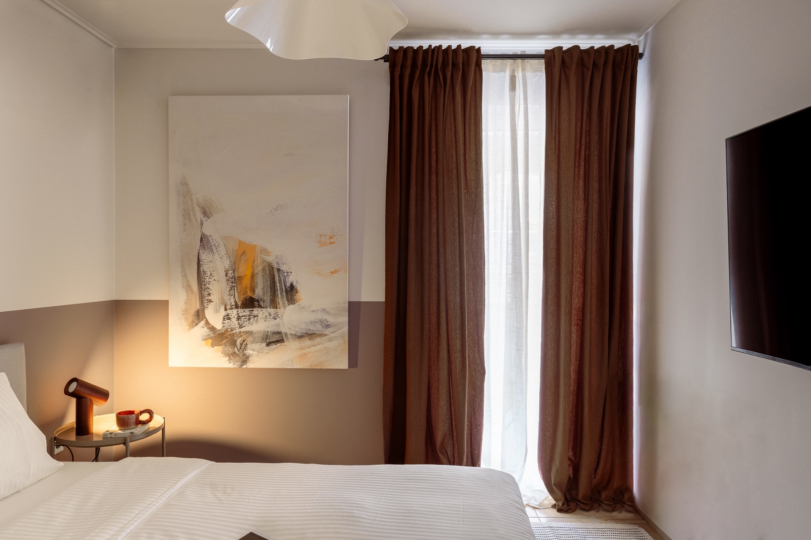 Στα υπνοδωμάτια, στο πλαίσιο της ιδιαίτερης χρωματικής ταυτότητας κάθε δωματίου, προτάθηκε ένα «εικονικό κεφαλάρι» σε χρώμα ίδιο με αυτό των κουρτινών συσκότισης.