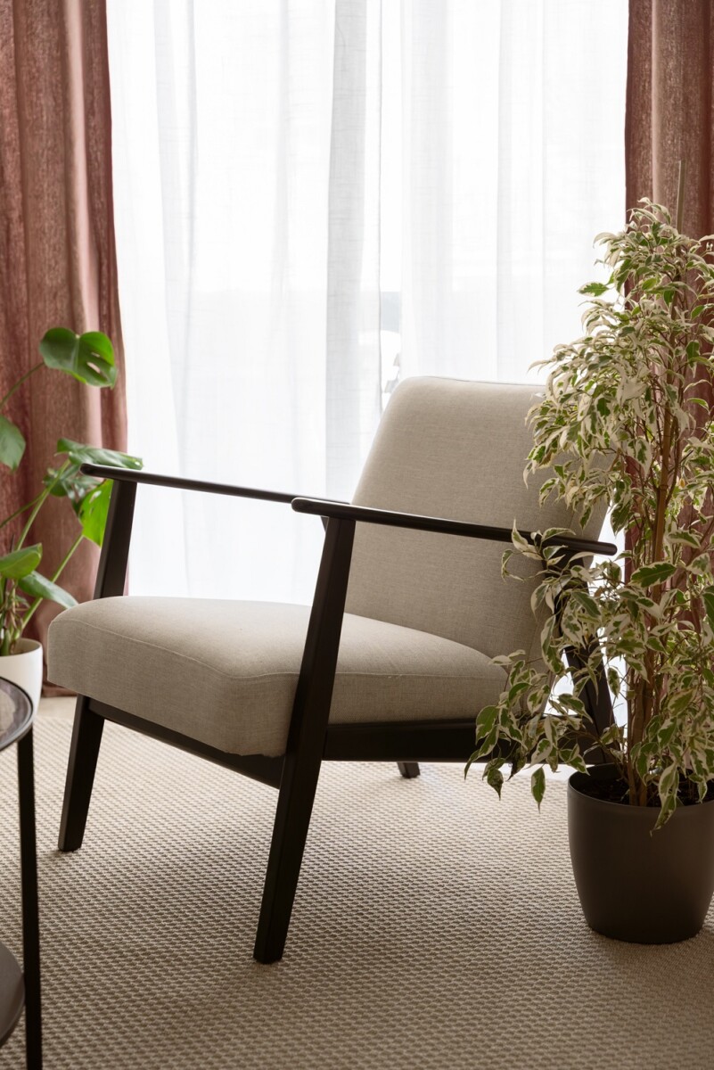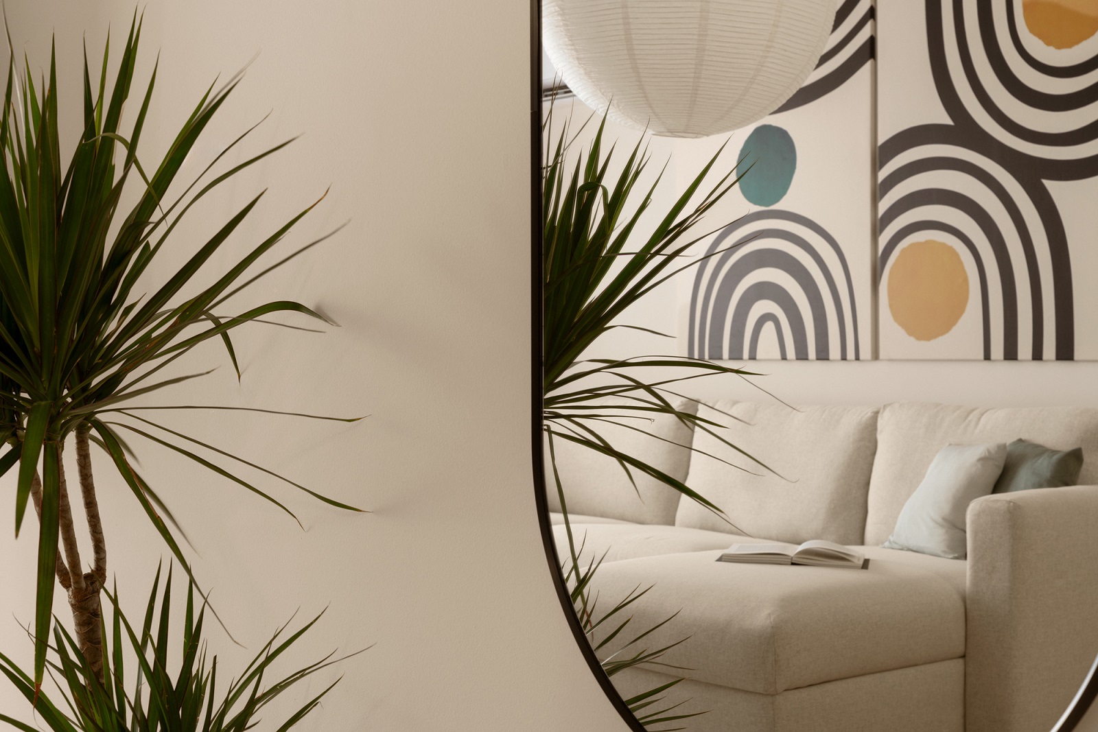 Το φυσικό στοιχείο αποτελεί βασικό κομμάτι στα έργα του γραφείου Space is around us, για αυτό και πρόσθεσαν φυτά εσωτερικού χώρου τόσο στο καθιστικό όσο και στα υπνοδωμάτια.