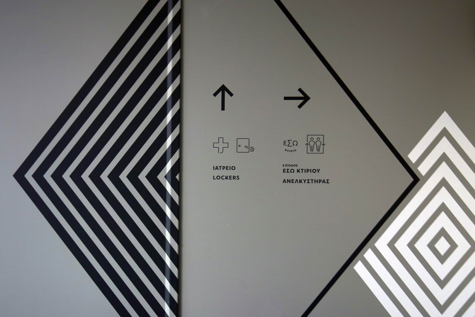 Η περιοχή του Κεραμεικού είναι γνωστή από την γεωμετρική περίοδο το 1050 π.Χ., για αυτό βλέπουμε διάφορες σημάνσεις σε όλους τους ορόφους με ξεχωριστό γεωμετρικό σχήμα, ενώ στο πάτωμα βλέπουμε γραμμές που, υιοθετώντας τον μύθο του Μίτου της Αριάδνης, δείχνουν την πληροφορία στους ανθρώπους για την κατεύθυνση την οποία θα πρέπει να ακολουθήσουν, αλλά και δηλώνουν την τοποθεσία για όποιον μπορεί να χρειαστεί τεχνική υποστήριξη.