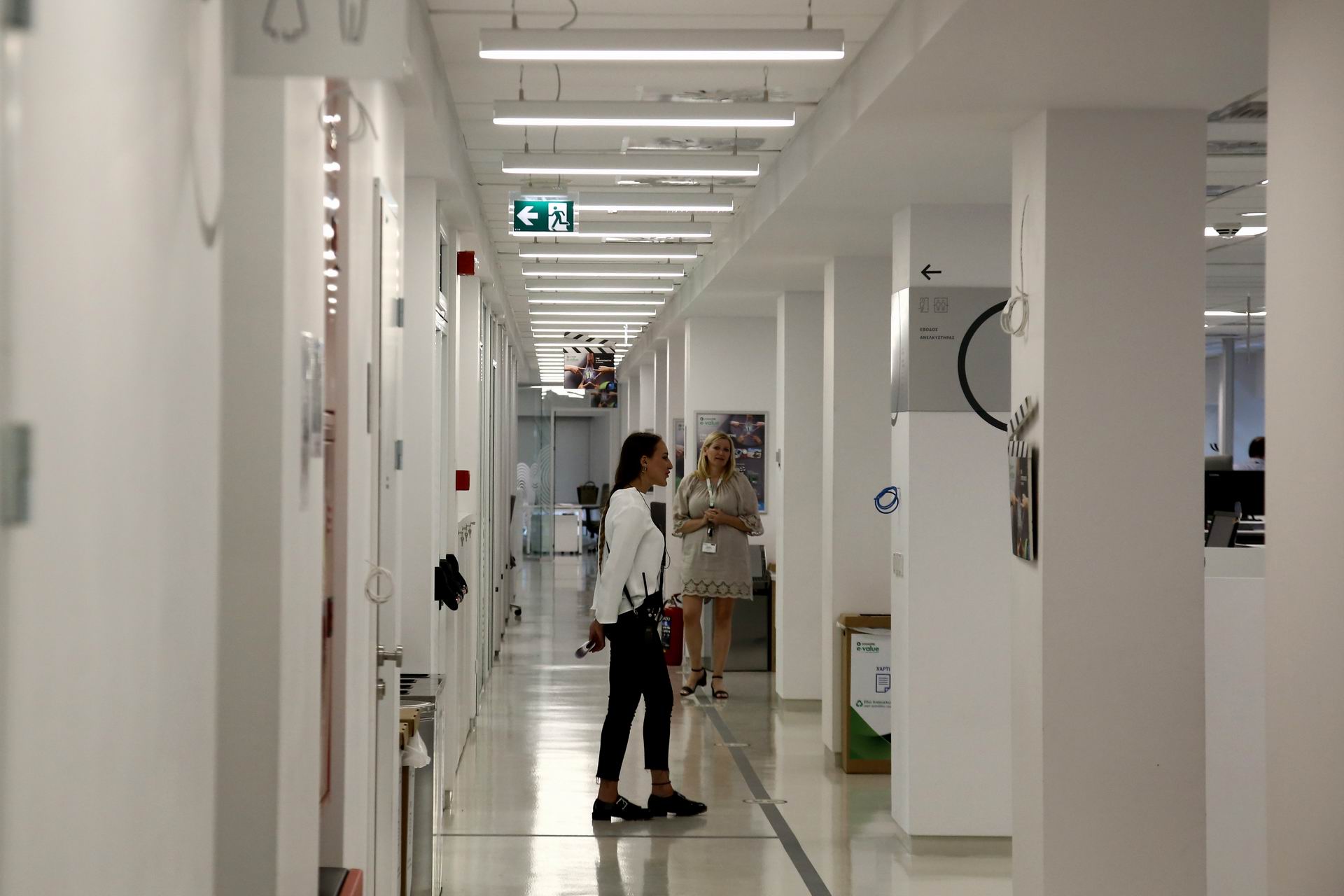 Στην ξενάγηση στο καινούργιο «σπίτι» της εταιρείας ξεχωρίζει το μίνιμαλ design που αφήνει τον χώρο να «αναπνεύσει», καθώς και το λευκό στους τοίχους που επιτρέπει στο φως να διαχυθεί στους χώρους αλλά και στους ανθρώπους που θα το γεμίσουν με ζωή να προσθέσουν τις δικές τους πινελιές. Είναι εμφανές ότι η OTE Estate που ανέλαβε και υλοποίησε την πλήρη ανακαίνιση του κτιρίου έλαβε υπόψη τα διεθνή πρότυπα και τις ειδικές απαιτήσεις που έχει ένα contact center.