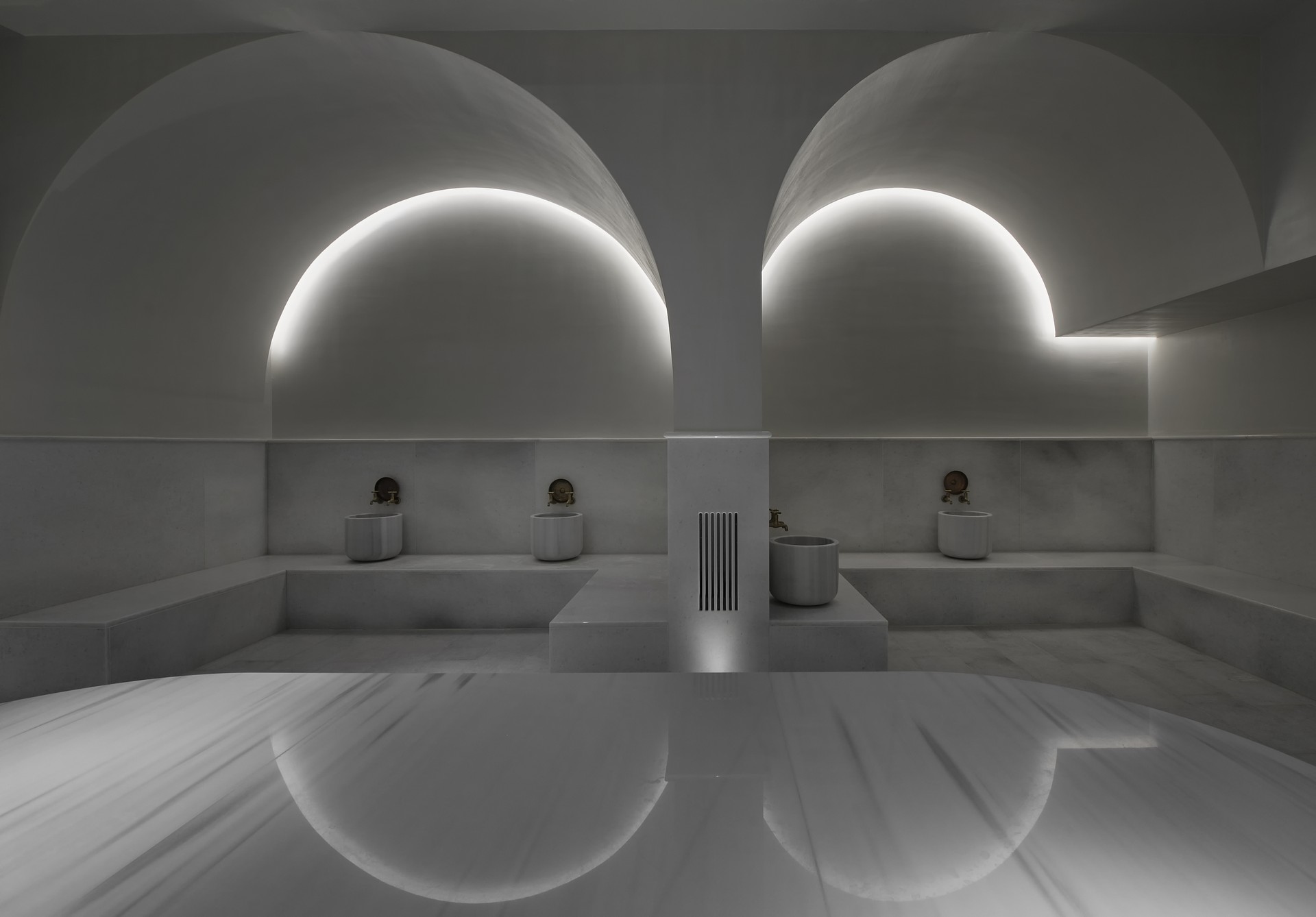 Σε μία έκταση 230 τετραγωνικών μέτρων στο ισόγειο του ξενοδοχείου, η ομάδα του αρχιτεκτονικού γραφείου μελέτησε το νέο “hammam baths” βασισμένη στην ίδια αισθητική και αρχές που σχεδιάστηκε το πρώτο στην Αθήνα. Το ιδιαίτερο κτιριολογικό πρόγραμμα, οι ξεχωριστές απαιτήσεις των χώρων, οι υπηρεσίες και οι κινήσεις αποτέλεσαν τα βασικά ζητούμενα του αρχιτεκτονικού σχεδιασμού.