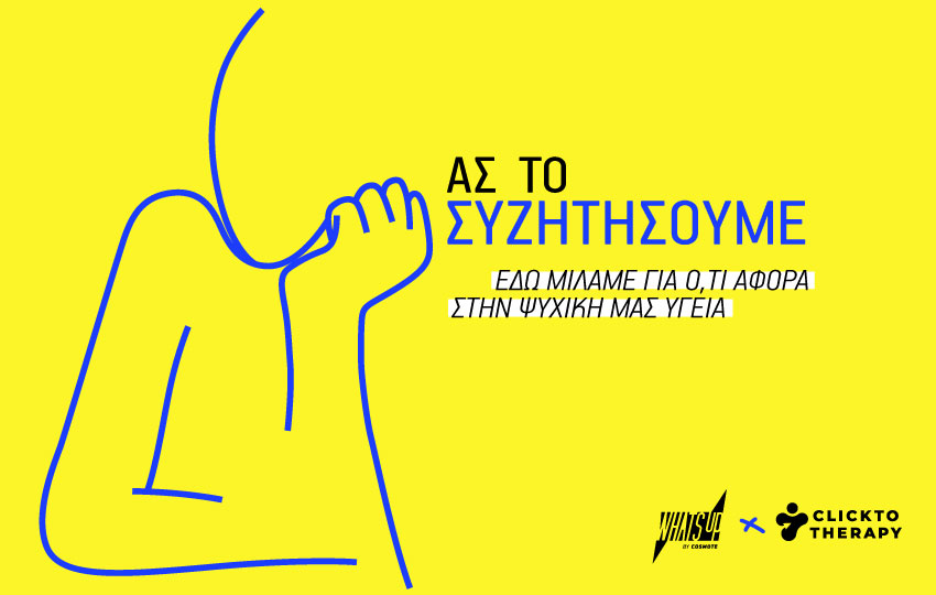 Στην Ελλάδα, δημιουργήθηκε μια ξεχωριστή σειρά για την ψυχική υγεία στο YouTube (και στο Spotify για τους λάτρεις των podcasts) από το WHAT’S UP σε συνεργασία με το Click to Therapy. «Ας το Συζητήσουμε» λέει το WHAT’S UP και πατάμε pause στους φρενήρεις ρυθμούς της καθημερινότητας για να ακούσουμε την ιστορία του stand-up comedian Θωμά Ζάμπρα, μεταξύ άλλων, και πως δίνει εκείνος τις προσωπικές του μάχες.