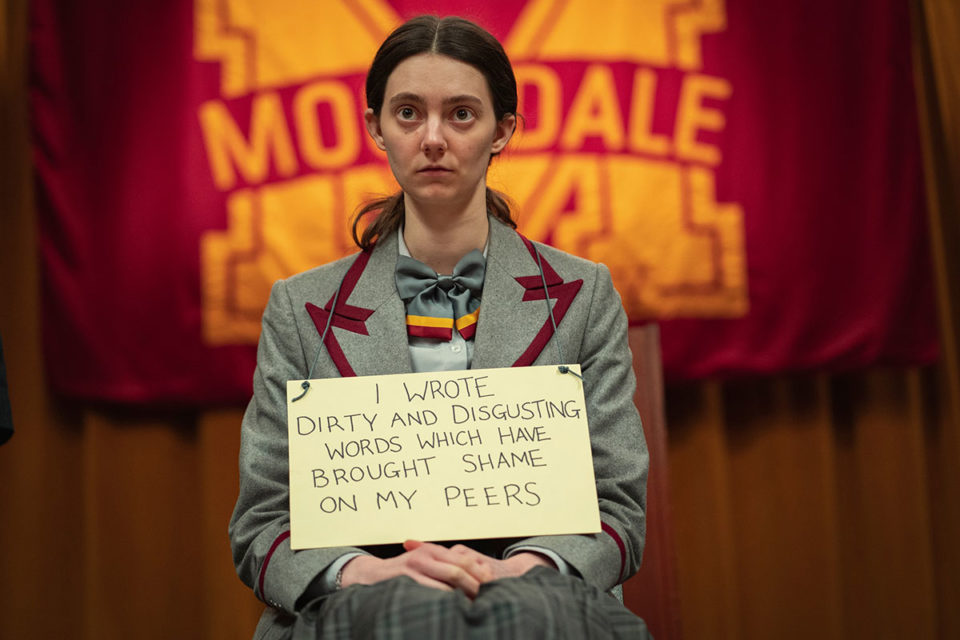Αυτό φαίνεται και από τη νέα Διευθύντρια του σχολείου που παρουσιάζεται για πρώτη φορά στους μαθητές ως η σούπερ προοδευτική, νεοφιλελεύθερη, χαλαρή και άνετη, ένα επικοινωνιακό τρικ της για να νιώθουν οικεία απέναντί της μέχρι εκείνη να τους χειριστεί, φανερώνοντας αργότερα ένα άλλο πρόσωπο, που αγγίζει τα όρια του alt right μοντέλου. Το οποίο και αυτό με τη σειρά του κρύβει έναν καταπιεσμένο εαυτό με πολλά τρωτά σημεία. Μέχρι αυτό να φανερωθεί, οι συμβολισμοί παίρνουν φωτιά και οι Pink Floyd βάζουν τη σφραγίδα τους σε μια κορύφωση καταστάσεων που θυμίζει το βίντεο του “Another Brick in the Wall”. Οι μαθητές πρέπει να περπατούν σε γραμμές, να φορούν την ίδια στολή, να τιμωρούνται για τη διαφορετικότητά τους και να ντροπιάζονται στο αμφιθέατρο μπροστά σε όλους. Μέχρι τη στιγμή που απολαμβάνουμε την ανατροπή και την αλληλεγγύη ανάμεσα στους μαθητές. Γιατί, φυσικά, το να δείχνεις κάποιον με το δάχτυλο, συνήθως γυρίζει μπούμερανγκ.