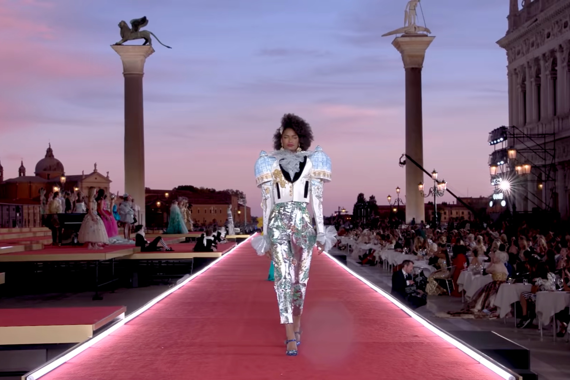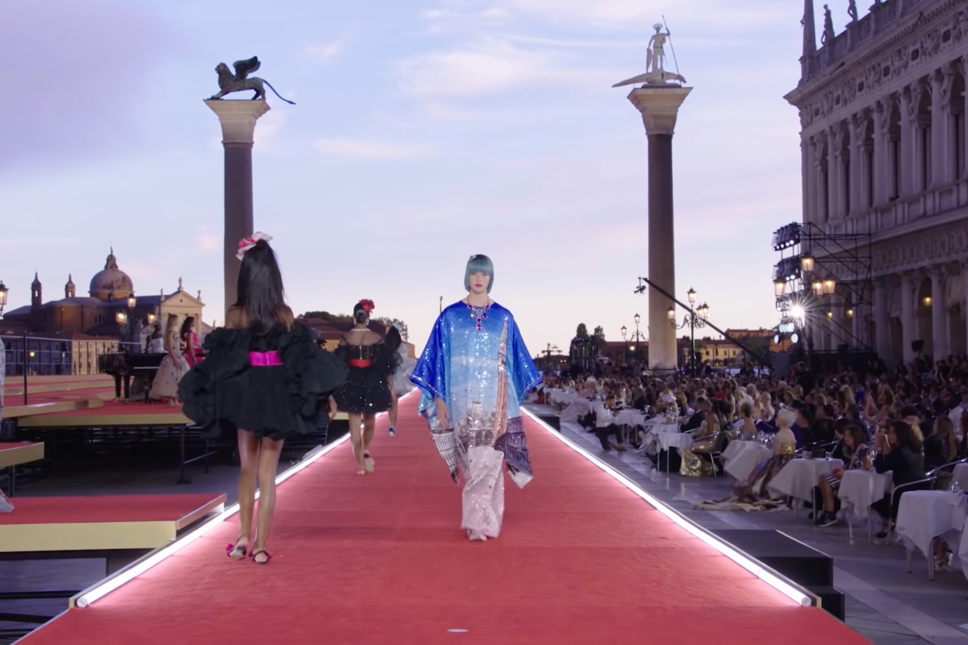 Η Βενετία είναι μια πόλη που έχει γνωρίσει γνωρίσει στιγμές μεγάλης δόξας, ενώ αποτελεί προορισμό για εκατομμύρια επισκέπτες κάθε χρόνο που θέλουν να γνωρίσουν από κοντά τα περίφημα κανάλια της και να θαυμάσουν την μοναδική της αρχιτεκτονική. Αυτό όμως, που έκαναν ο Ντομένικο Ντόλτσε και ο Στέφανο Γκαμπάνα πριν δύο μέρες, μοιάζει πρωτόγνωρο ακόμα και γι΄αυτή την θρυλική πόλη. Οι εμβληματικοί Ιταλοί σχεδιαστές επέλεξαν την πλατεία του Αγίου Μάρκου για να παρουσιάσουν την Alta Moda συλλογή τους και κάπως έτσι οι γόνδολες γέμισαν με μοντέλα που φορούσαν δημιουργίες υψηλής ραπτικής και περίμεναν να περπατήσουν σε μια πασαρέλα που όμοια δύσκολα θα ξαναβρούν.