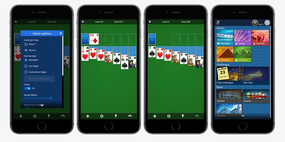 Χρειάστηκε να φτάσουμε στα Windows 10 για να τη δούμε να κάνει δυναμικό “comeback” στους υπολογιστές με τη Microsoft μάλιστα να μη βγαίνει ζημιωμένη, μόνο που όπως φαίνεται, τα σχέδια των ανθρώπων της τελευταίας δεν εξαντλήθηκαν στα PC. Η πασιέντζα που όλοι αγαπήσαμε, βλέπετε, το σύμβολο κάθε «σκληρά εργαζόμενου» στα αξέχαστα ‘90s επιστρέφει θριαμβευτικά στα κινητά μας τηλέφωνα και τα tablets καθώς κυκλοφορεί πλέον σε iOS και Android! Για να την κατεβάσετε, που λέτε, θα πάτε σε App Store και Play Store και θα ψάξετε για το Microsoft Solitaire Collection. Προσφέρεται δωρεάν μέχρι και τις 31 Δεκεμβρίου και δεν περιλαμβάνει διαφημίσεις ή κάποιο άλλο “catch” –μοναδικό αρνητικό το ότι «ζυγίζει» 144 MB.