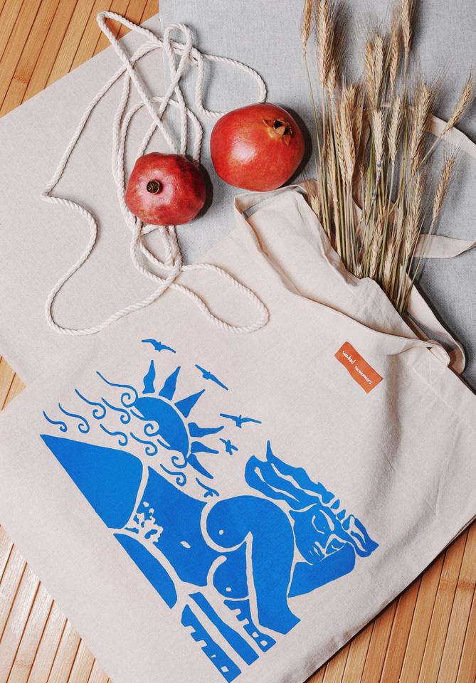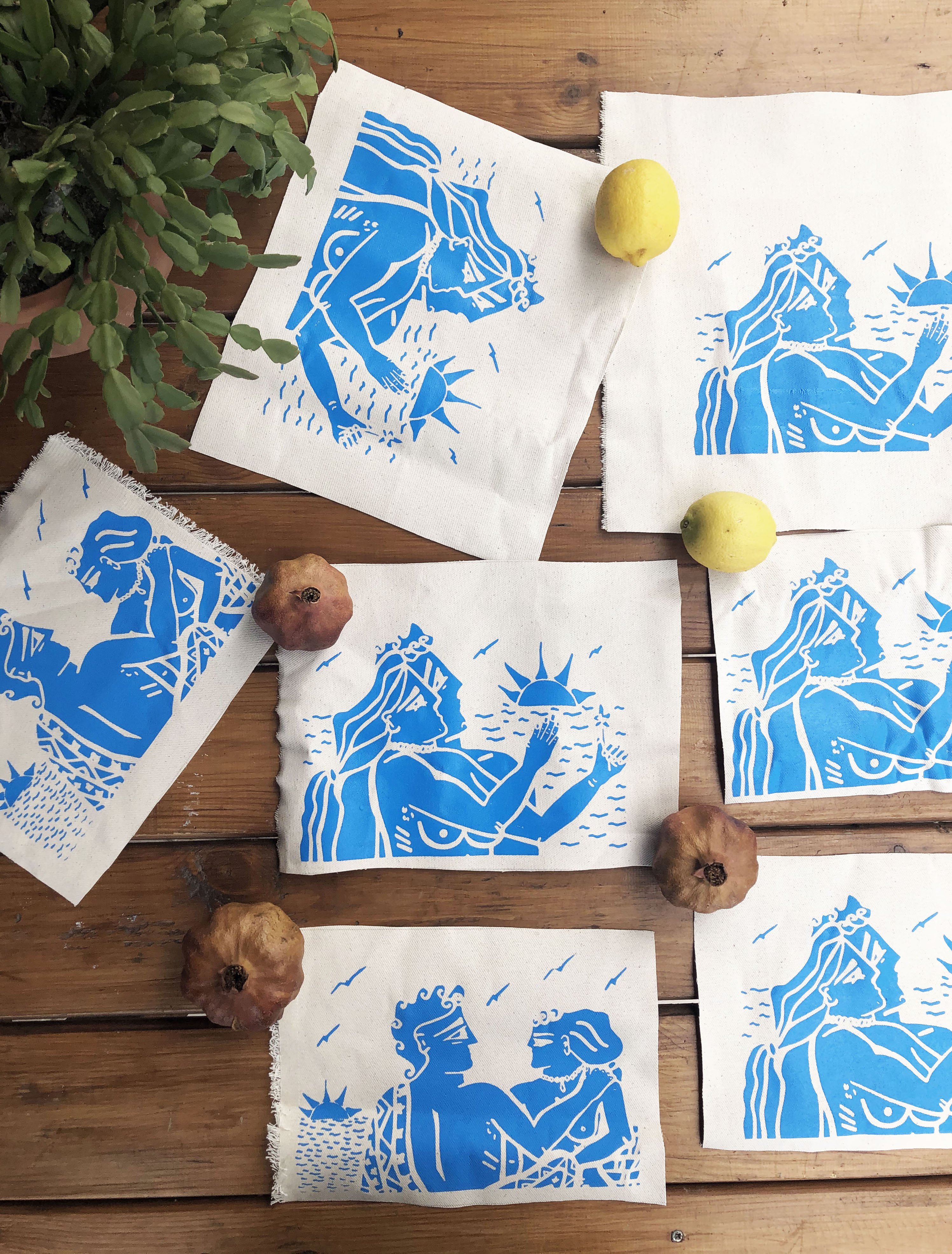 Πριν από ένα χρόνο παρακολούθησε ένα σεμινάριο μεταξοτυπίας κι έμαθε να τυπώνει τα σκίτσα της σε ύφασμα. «Πάντα έψαχνα τον τρόπο να μοιράζομαι την τέχνη μου με τους γύρω μου και η ιδέα του να φοράει κάποιος ένα μου δικό έργο με ενθουσίασε». Προορισμένο για t-shirt, το πρώτο της σκίτσο απεικόνιζε μια γυναίκα γυμνή, ξαπλωμένη στην παραλία ένα απόγευμα καλοκαιριού. «Εκείνη τη γλυκιά ώρα που φεύγουν όλοι, ο ήλιος ξεκινάει να πέφτει και ακούγεται μόνο το κύμα και το δροσερό αεράκι. Υποσυνείδητα, το σκίτσο αντικατοπτρίζει τη δική μου επιθυμία να βρίσκομαι στην παραλία εκείνη την ώρα, κάθε μέρα».