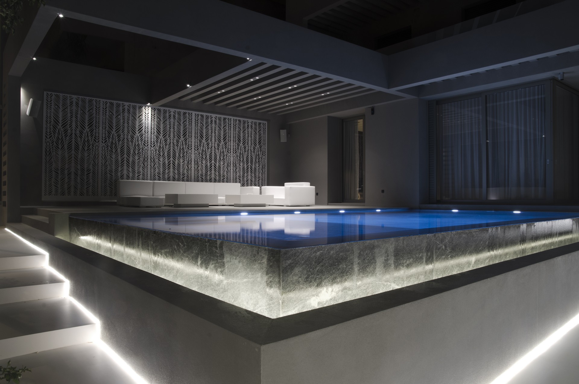 Όπως εξηγεί η Κατερίνα Καραγιάννη «η αρχιτεκτονική των χώρων και τα υλικά διατηρούν την αστική αισθητική μιας σύγχρονης κατοικίας της πόλης, ενώ τα στοιχεία του νερού, των σκιάσεων και της φύτευσης δίνουν μια αίσθηση απομόνωσης, ιδιωτικότητας και φυσικού στοιχείου. Το εσωτερικό διαρθρώνεται με μεγάλους ενιαίους χώρους, που μετατρέπουν την κατοικία σε ένα διαμπερή και φωτεινό χώρο σε όλες τις διαστάσεις του».