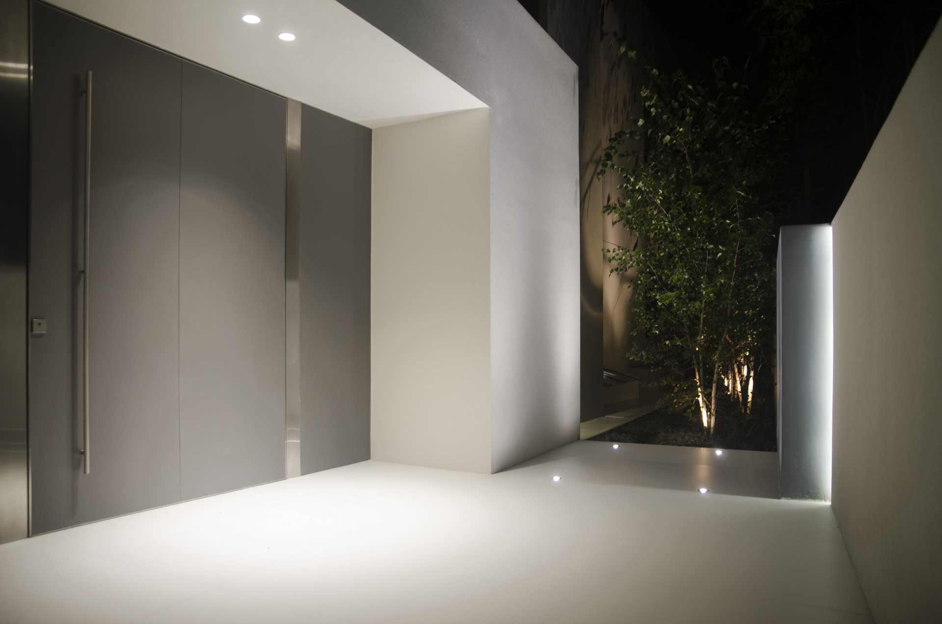 Ο εξωτερικός χώρος έχει σχεδιαστεί με τέτοιο τρόπο, ώστε να προσφέρει «μικρές, καθημερινές αποδράσεις από τη ζωή της πόλης». Μια πισίνα καταλαμβάνει το μπροστινό μέρος της κατοικίας και είναι επενδεδυμένη με μάρμαρο Αλιβερίου. Τον υπαίθριο χώρο καλύπτει μια πέργκολα που προσφέρει σκίαση, ενώ μεταλλικά διάτρητα φύλλα δημιουργούν ένα προστατευτικό παραπέτασμα από τις γειτονικές κατοικίες.