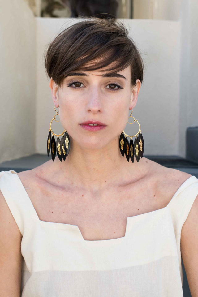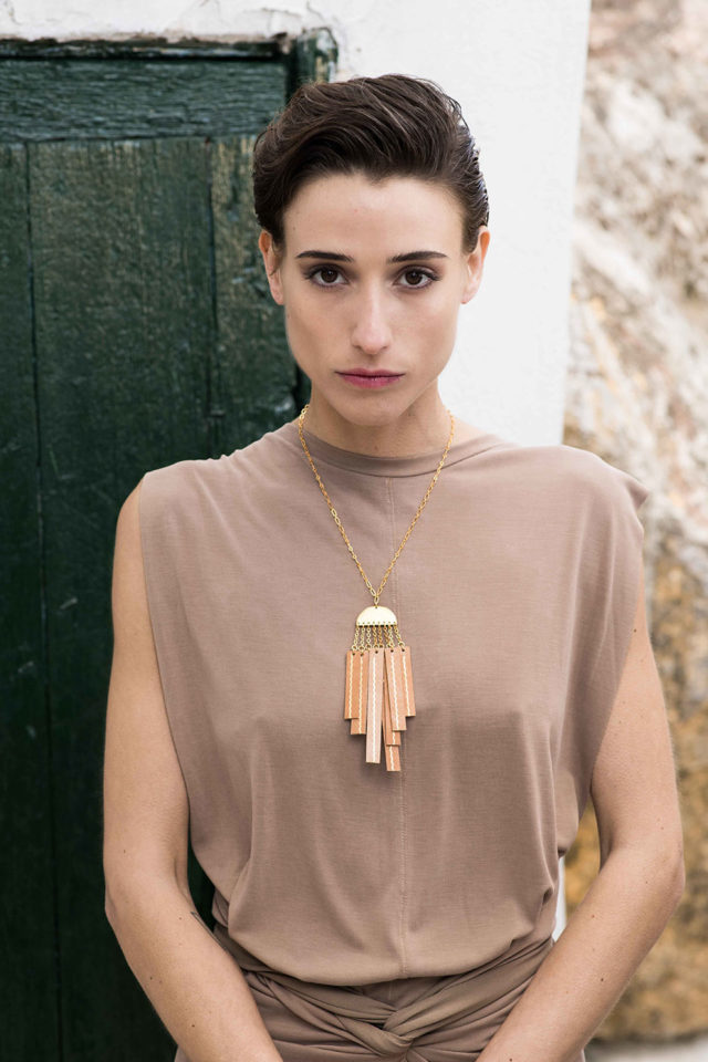 Σκουλαρίκια, κολιέ και βραχιόλια σε αποχρώσεις του μαύρου, του καφέ, του χρυσού και όχι μόνο, γίνονται η τελική πινελιά που θα δέσει το outfit σας. «Τα Leather Trinkets είναι κοσμήματα φτιαγμένα αποκλειστικά από δέρμα και διακοσμημένα με παραδοσιακές τεχνικές της καλλιτεχνικής βιβλιοδεσίας. Διαφορετικά σχέδια και μεγέθη από δέρμα διακοσμούνται με ένα ειδικό φύλλο (Foil) όπως στα παλιά βιβλία. Με τη βοήθεια της φωτιάς και με διάφορα εργαλεία τυπώνεται το δέρμα. Αυτή η τεχνική ονομάζετε χρυσοτυπία. Μόνο παραδοσιακά εργαλεία και μεθόδοι της καλλιτεχνικής βιβλιοδεσίας χρησιμοποιούνται για να μπορέσουν να δημιουργηθούν αυτά τα κοσμήματα», εξηγεί η Μαρί Βαγγαλάτη.
