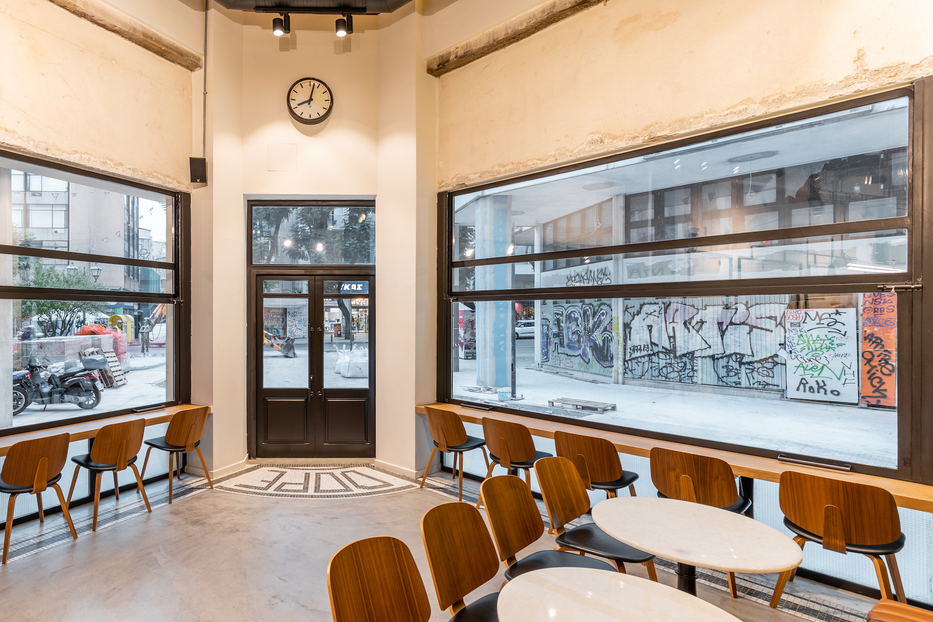 Δύο από αυτά τα κτίρια αποτέλεσαν και τον καμβά του σχεδιασμού των Mutiny. Tο DOPE ROASTING CO. εγκαταστάθηκε σε ένα ισόγειο, λαϊκό νεοκλασικό των μέσων του 19ου αιώνα. Όταν κλήθηκαν να αποτυπώσουν τον χώρο και να αναπτύξουμε τις προτάσεις τους διαμορφώνοντας το concept, οι αρχιτέκτονες βρέθηκαν αντιμέτωποι με ένα κτίριο που τα σημάδια του χρόνου και των διαφόρων εμπορικών χρήσεων του ήταν εμφανή τόσο στο εσωτερικό όσο και στο εξωτερικό του. «Η γενική κατεύθυνση και προτροπή των πελατών μας, ήταν να διατηρήσουμε τον χαρακτήρα του κτιρίου και να αναδείξουμε πολλά από τα “σημάδια του”, να σχεδιάσουμε ελεύθερα ένα χώρο που τα νέα στοιχεία του να έχουν σαφείς αναφορές στο παρελθόν, να προέρχονται όμως και να εξυπηρετούν σύγχρονες ανάγκες», εξηγούν.