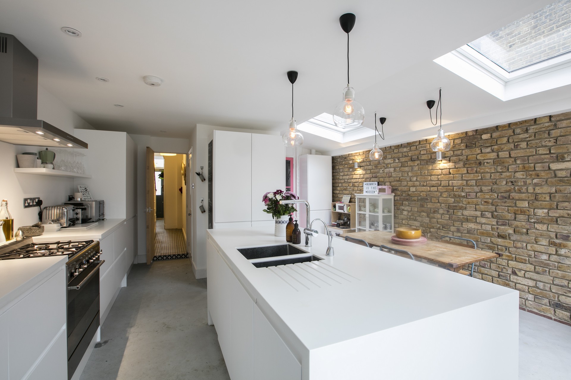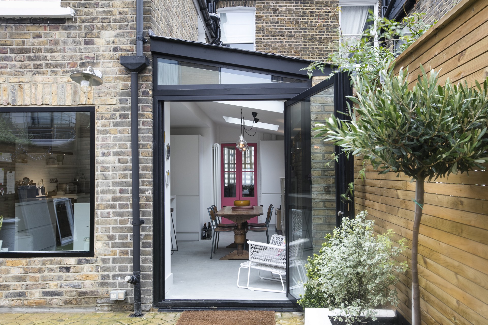Ο τοίχος επέκτασης είναι κατασκευασμένος με τούβλα, ίδια με αυτά του υφιστάμενου κτιρίου, έτσι ώστε να συνάδει και να συμπληρώνει την παραδοσιακή εικόνα μιας τυπικής μονοκατοικίας στο Λονδίνου.