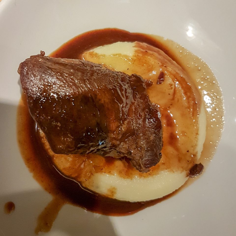 Άλλο χιτάκι. Τρυφερό μάγουλο χοιρινού πάνω σε πουρέ πατάτας.