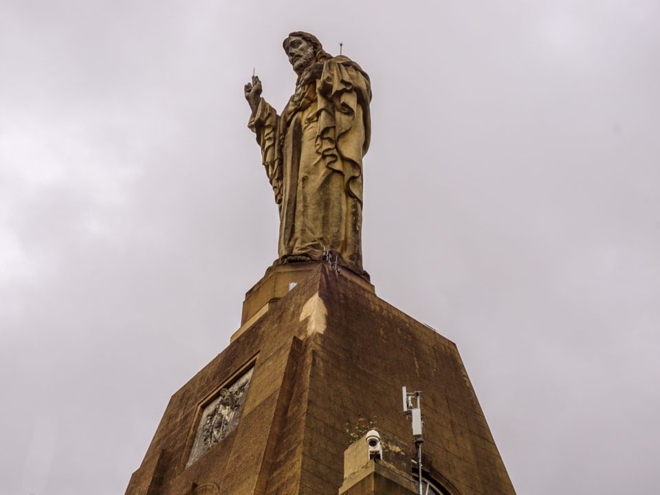 Πάνω από το «γραφικό» λιμανάκι, η φιγούρα του Ιησού που ευλογεί την πόλη.
