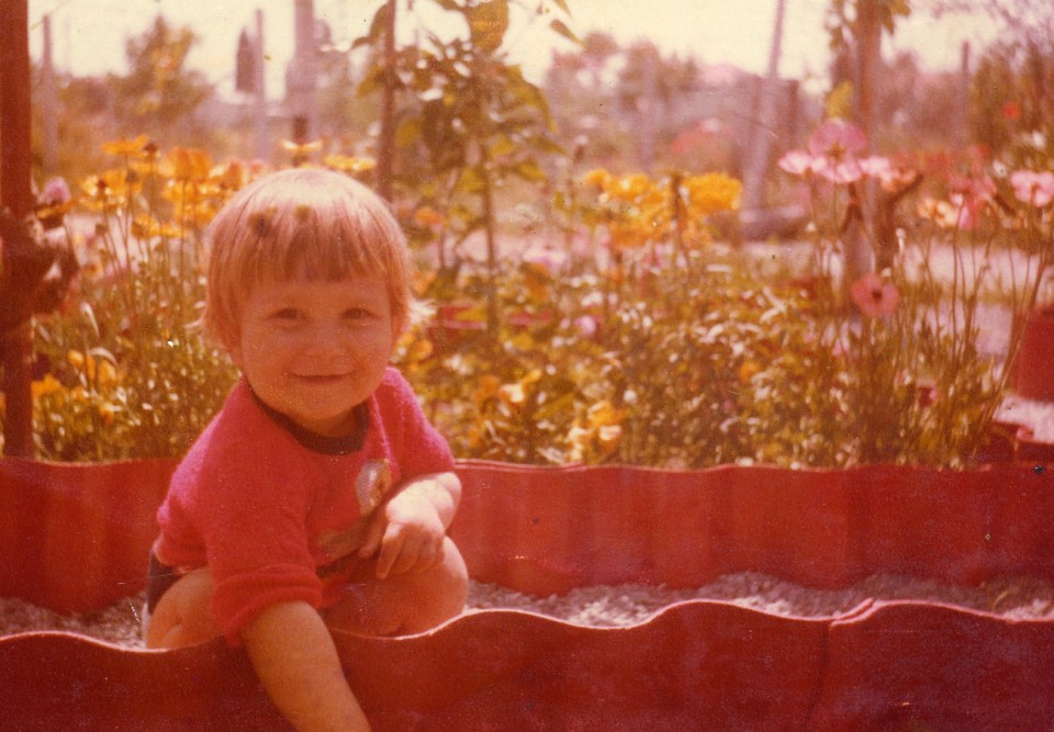 Η κούνια με την πράσινη τέντα που μια μέρα, από πολύ το «κούνια-μπέλα», όντως έσπασε η κουτέλα, ή τέλος πάντων η κεφάλα μου, όταν προσγειώθηκα στο παραπλήσιο κόκκινο ελενίτ που οριοθετούσε τα παρτέρια με τις μαργαρίτες.